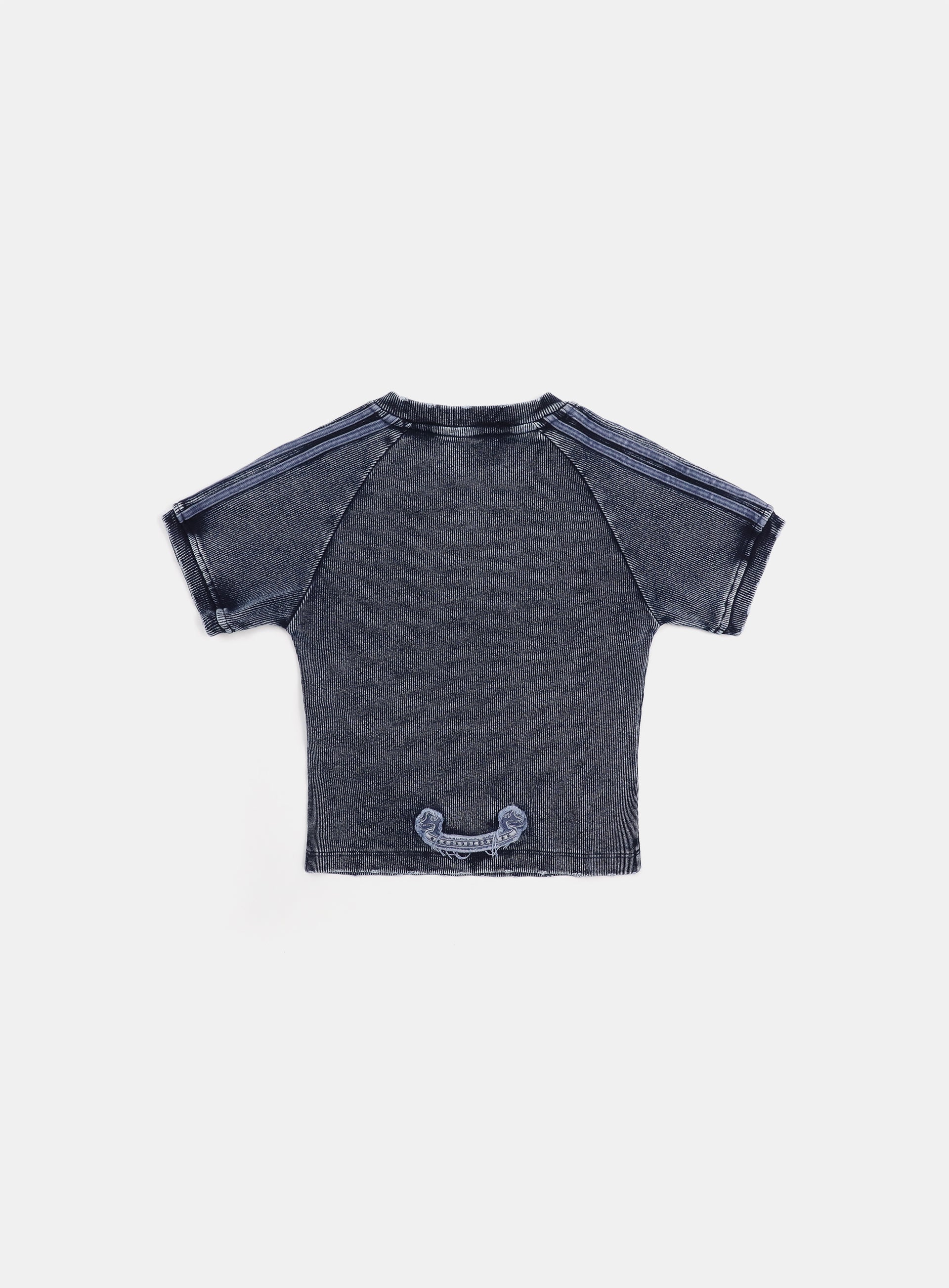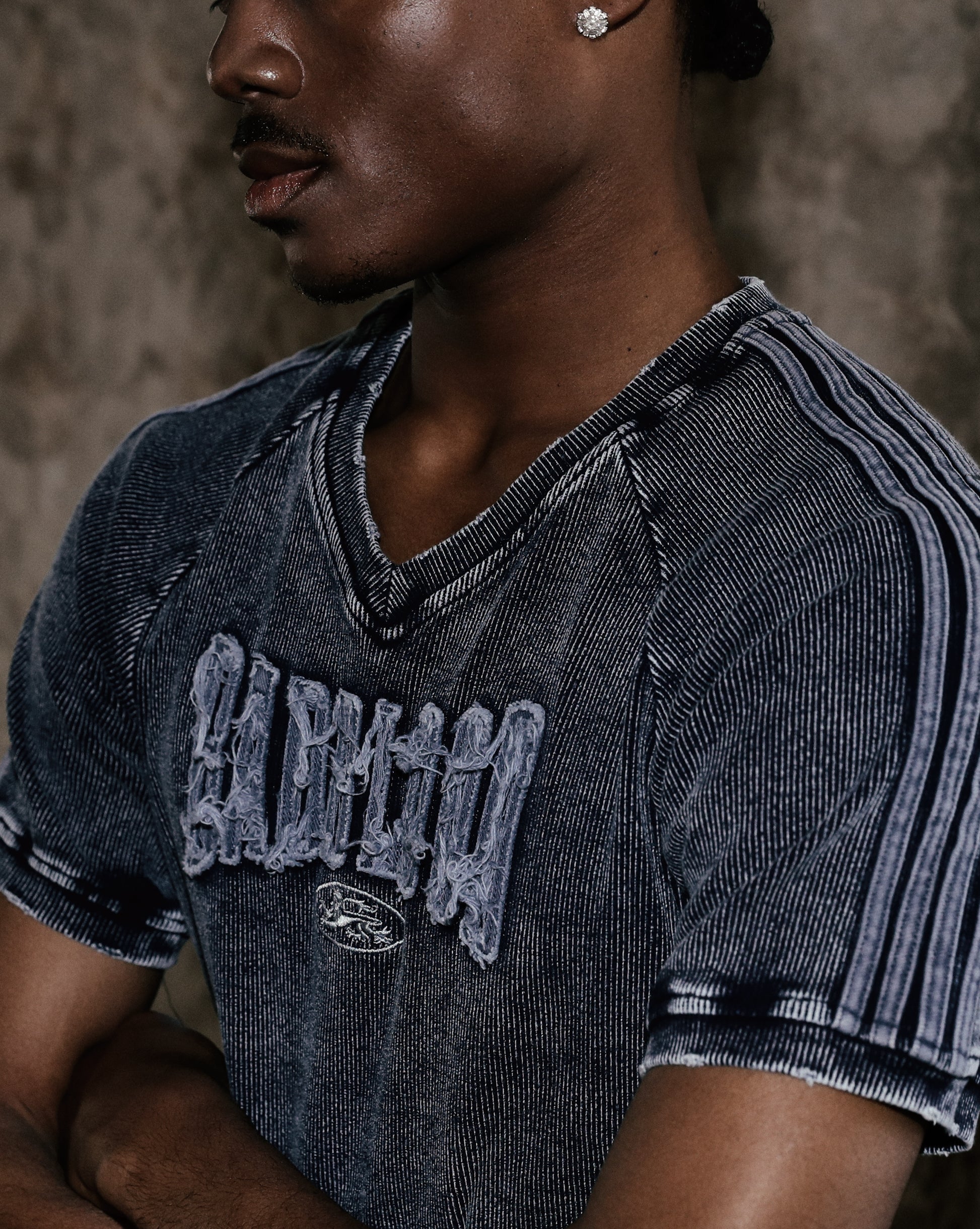 本款 Rusty Denim V 领 T 恤 采用 盐洗纯棉面料,展现 复古牛仔色调,极具个性魅力。