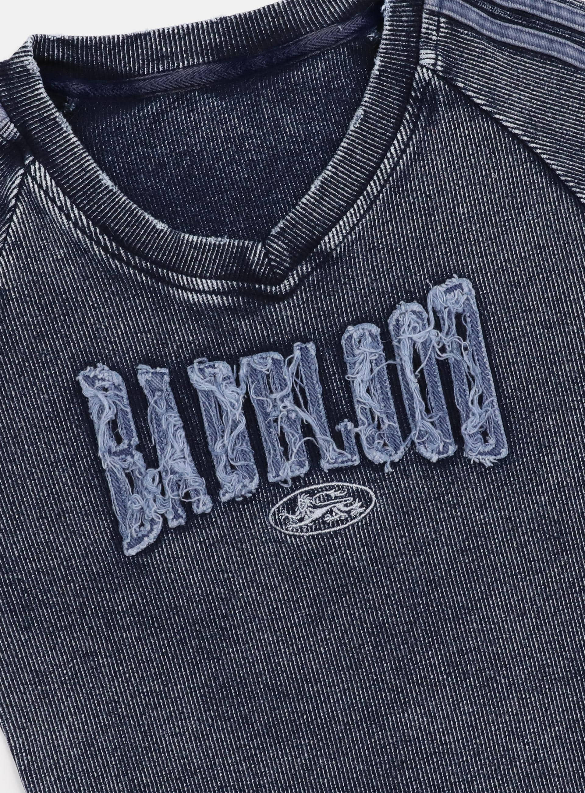 正面饰有 Badblood 旧化贴布徽标后下摆点缀 Badblood 横幅徽标