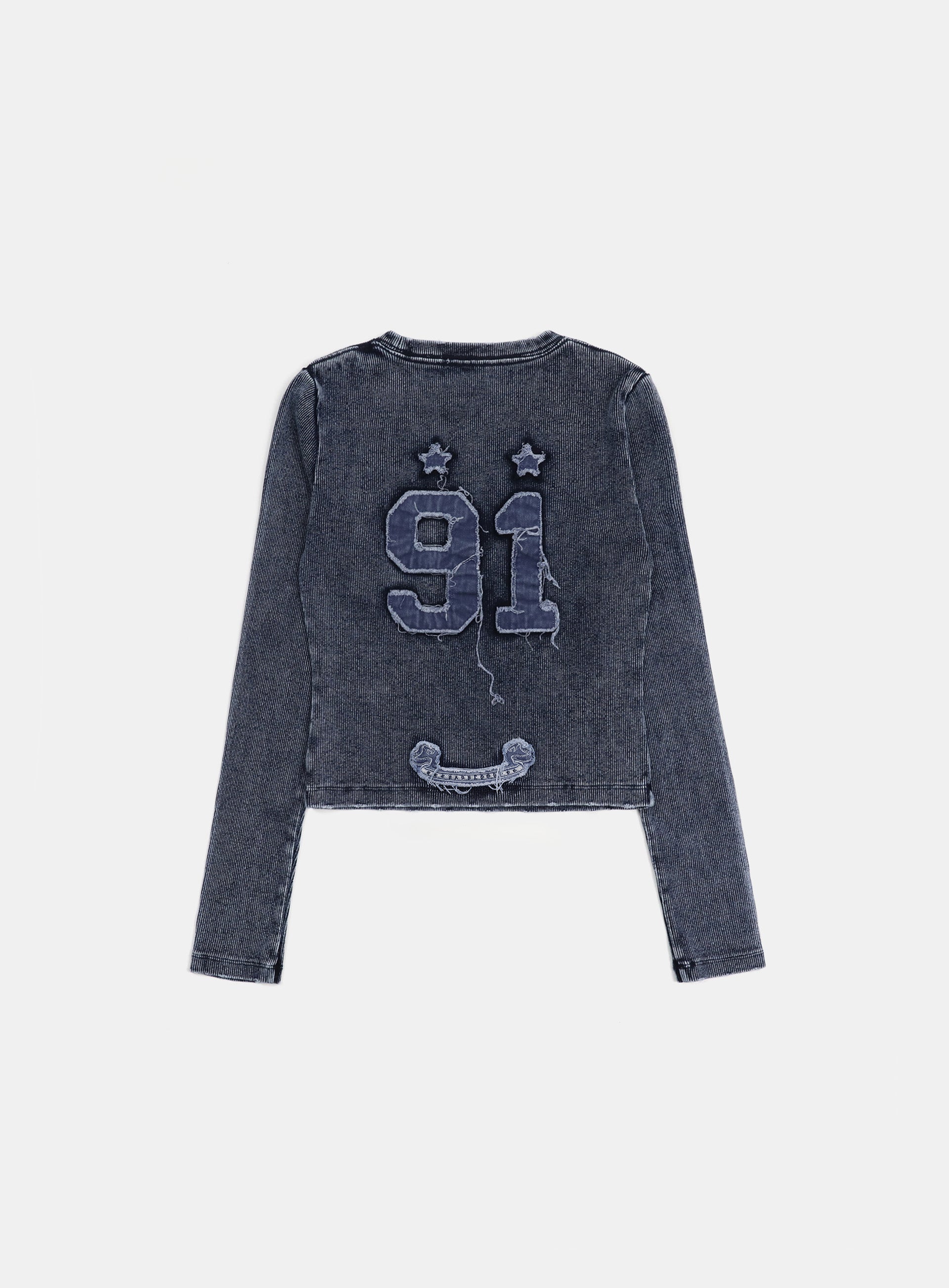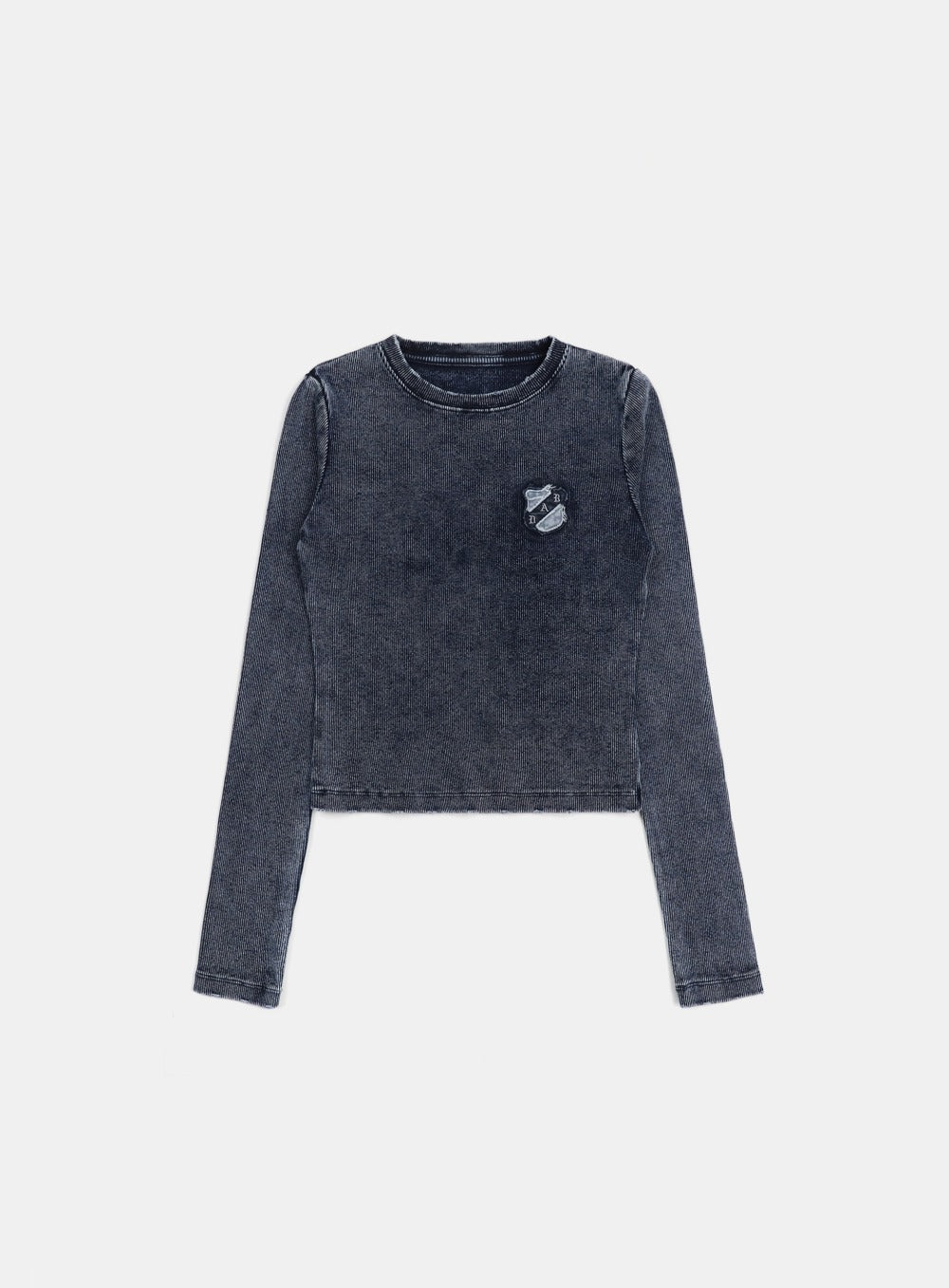 [w-tee25-014] 锈色牛仔修身长袖T恤 - 蓝色