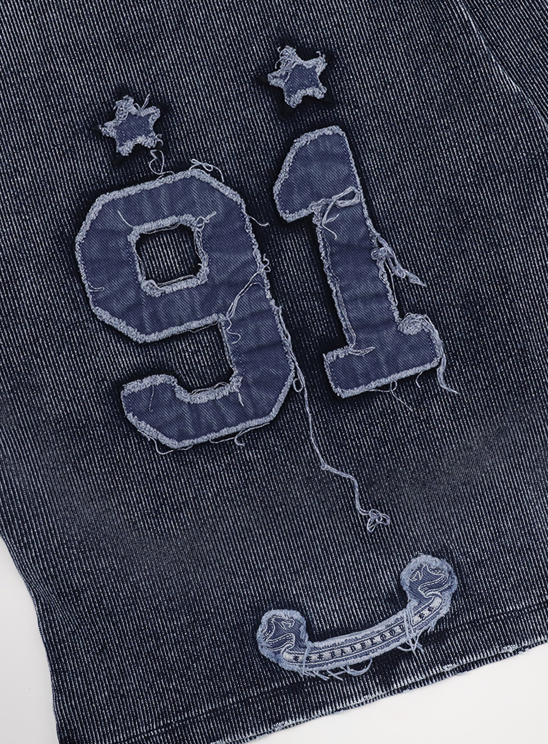 正面有Bad徽章补丁标志,背面有破旧风格的91补丁标志。