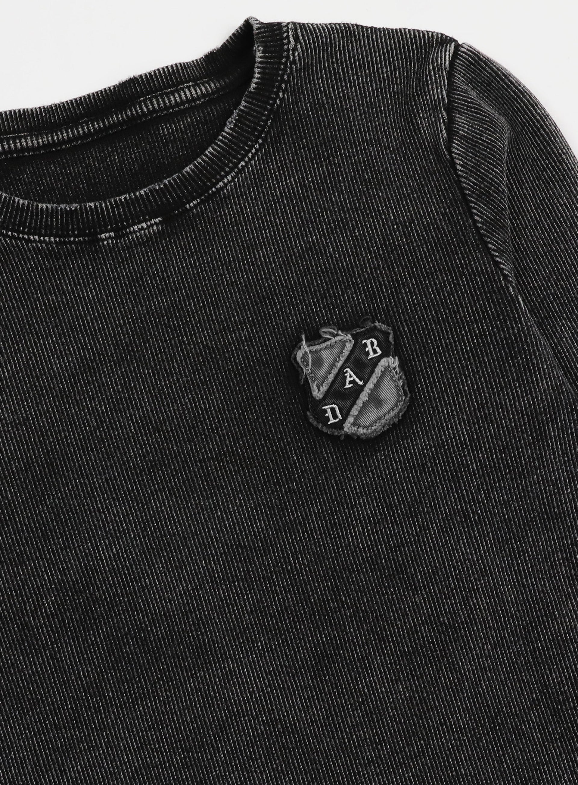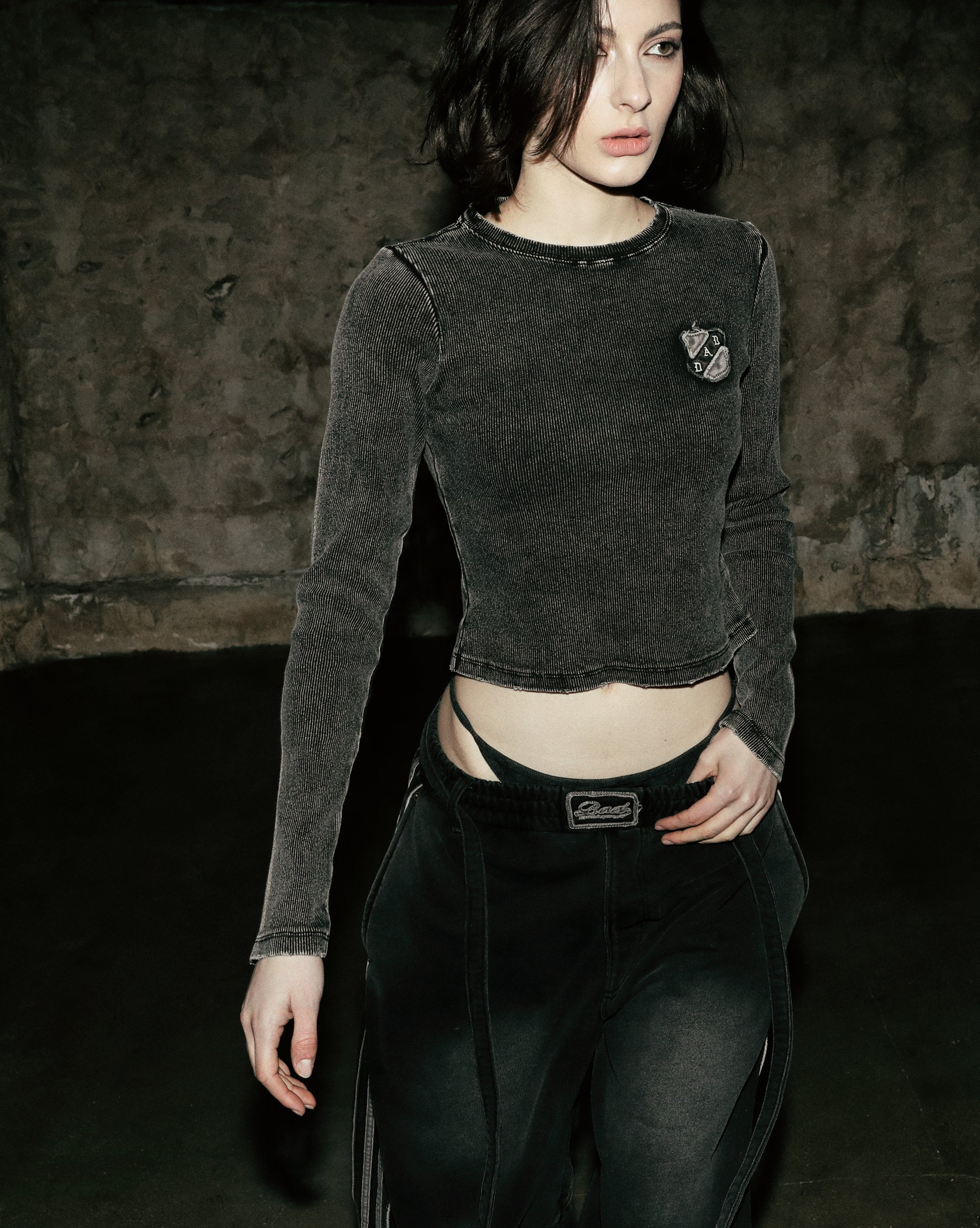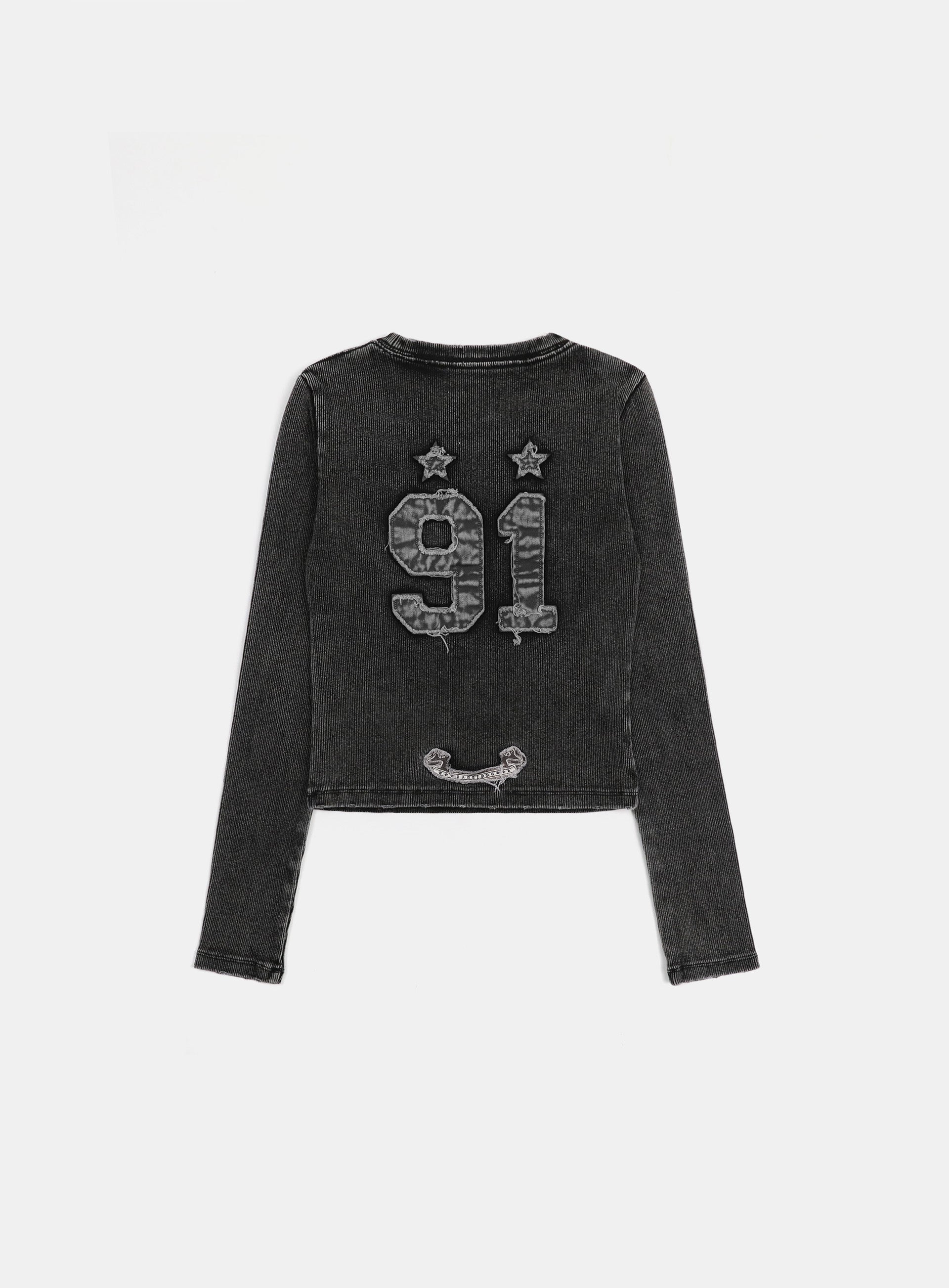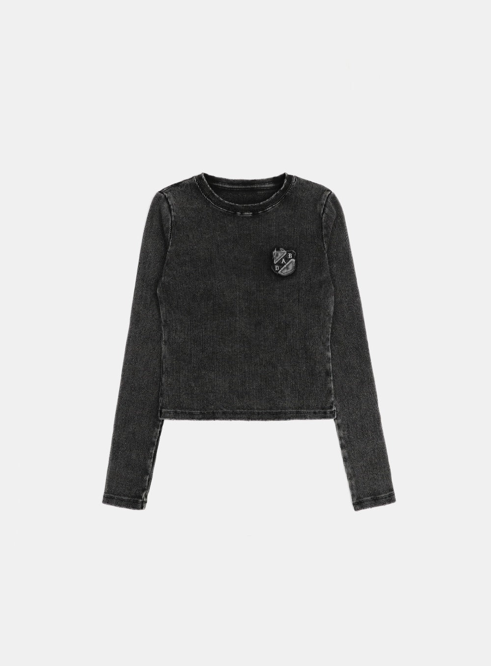 [w-tee25-015] 锈色牛仔修身长袖T恤 - 黑色