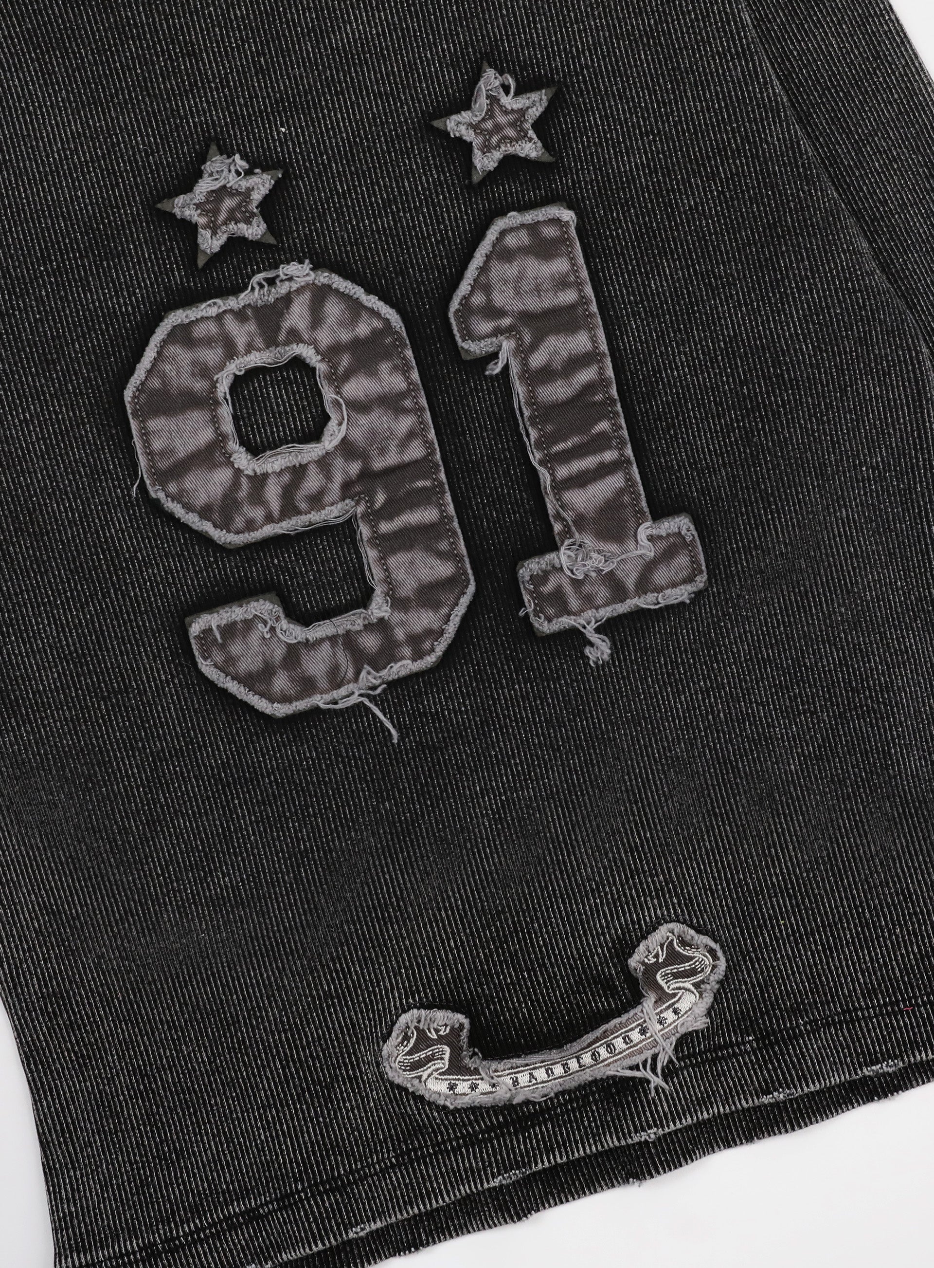 正面有Bad徽章补丁标志,背面有破旧风格的91补丁标志。