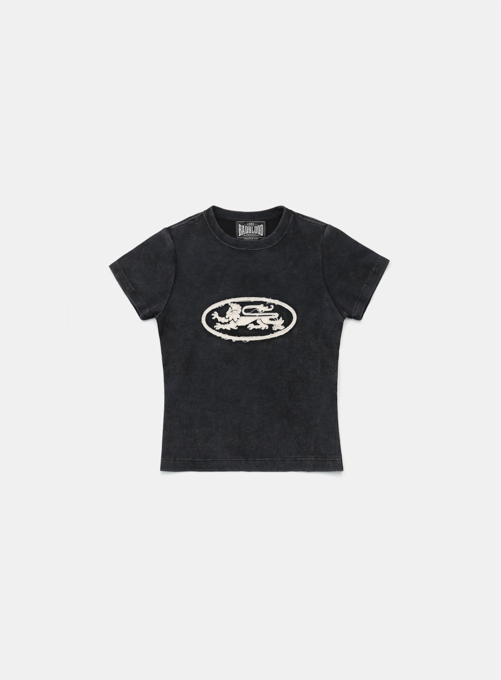 [w-tee25-033] Lion Patch 短袖修身版 - 水洗黑