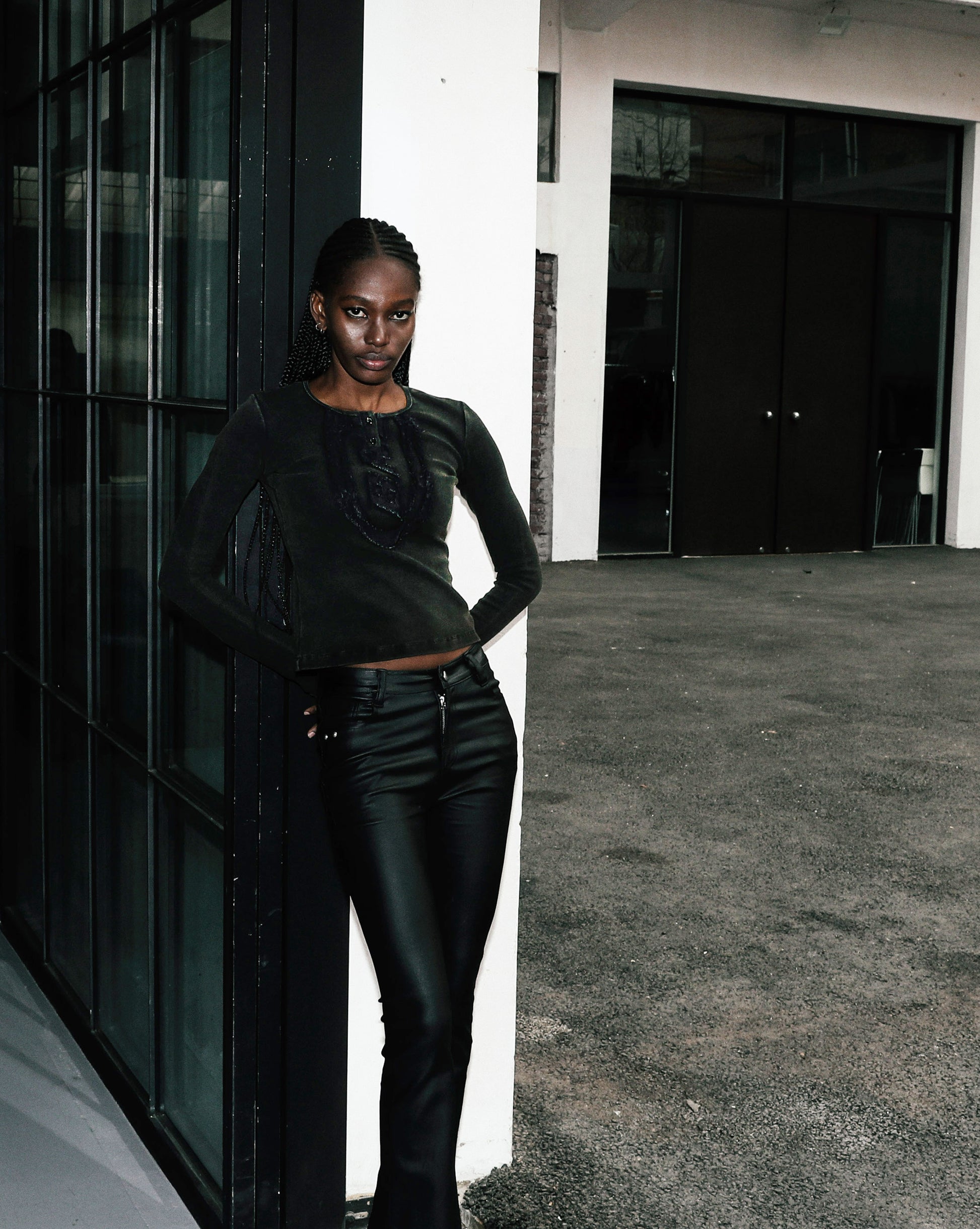 模特 RASHIDA 身高 173cm,体重 47kg,体型纤瘦,穿着 S 码。