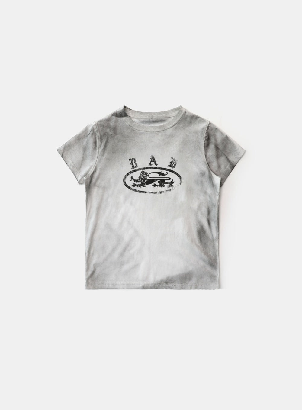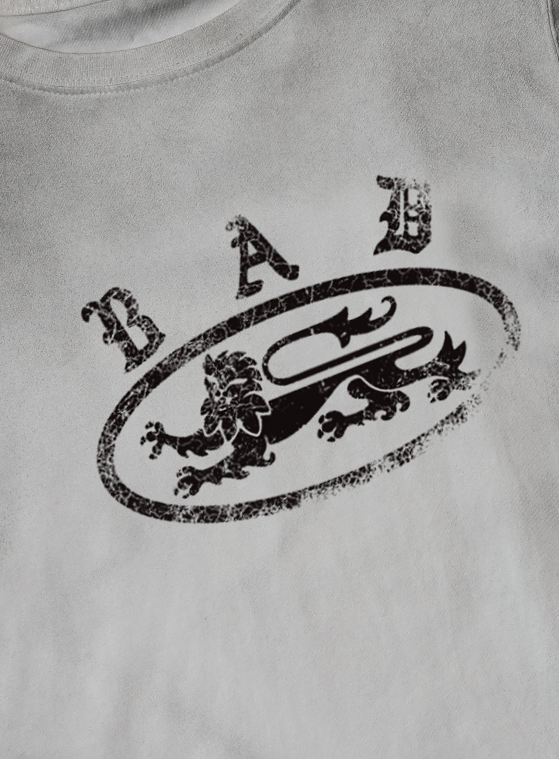正面有做旧的 Bad 狮子徽章标志,背面有 Badblood 文凭体标志印花。