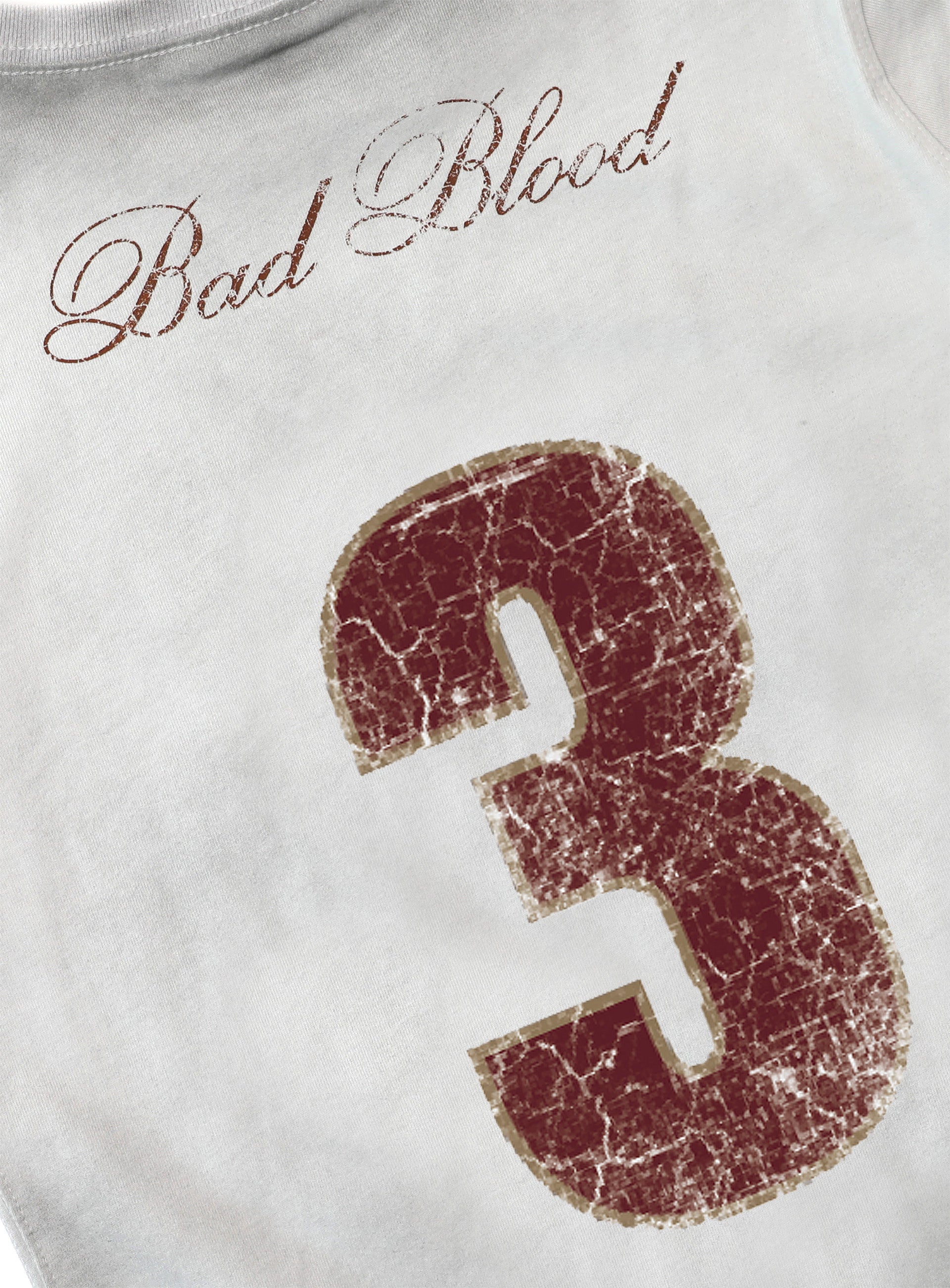 - 正面 BadBlood 金色印花 logo、BadBlood 经典印花 logo