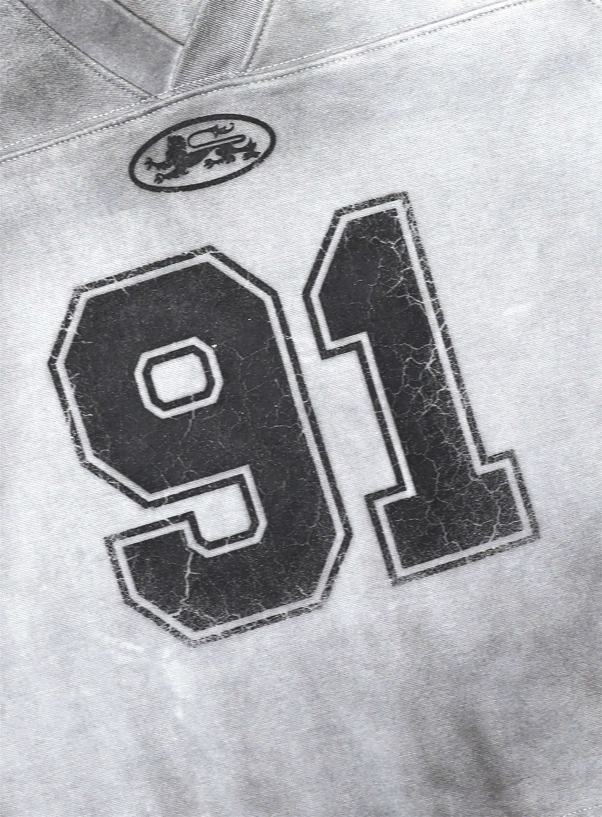 正面及袖子上有 91 印花 logo、狮子徽章印花 logo。
