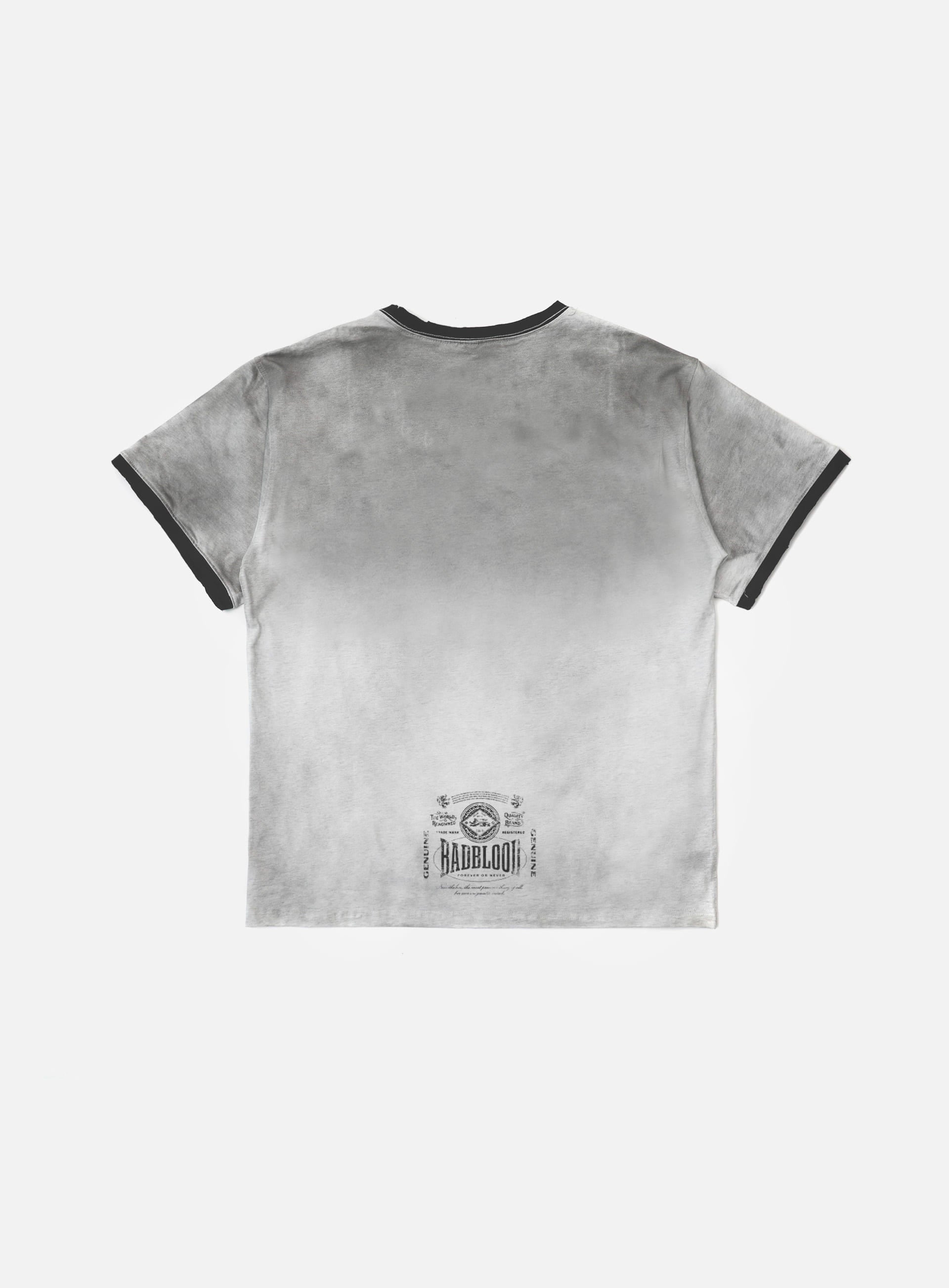 [w-tee25-052] 弧形标志尘感撞色T恤 - 水洗白