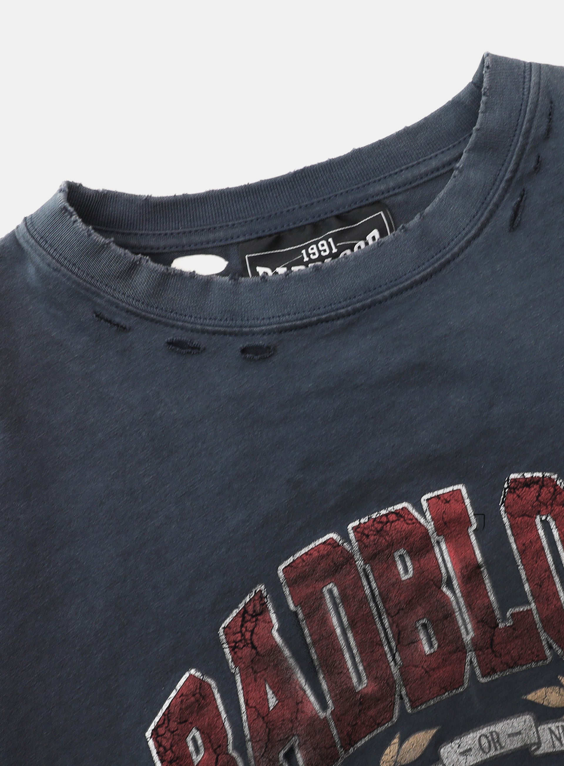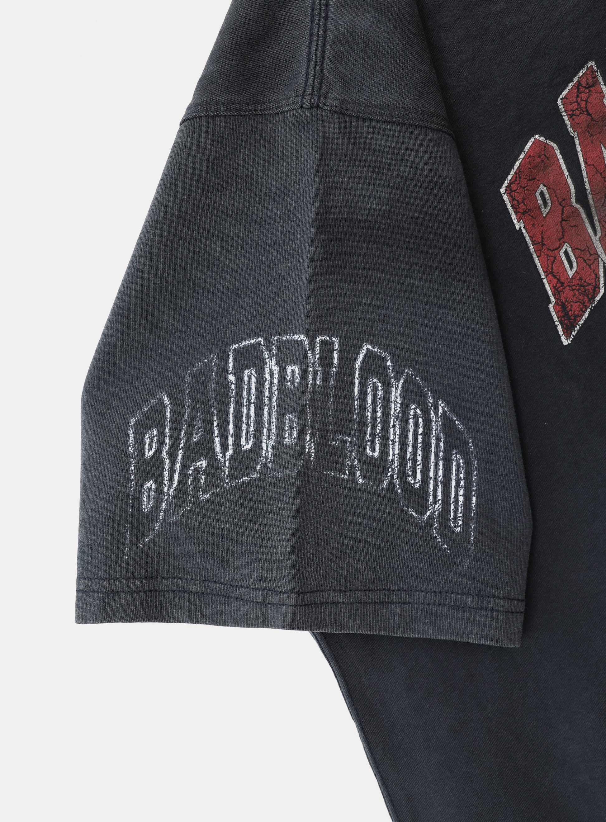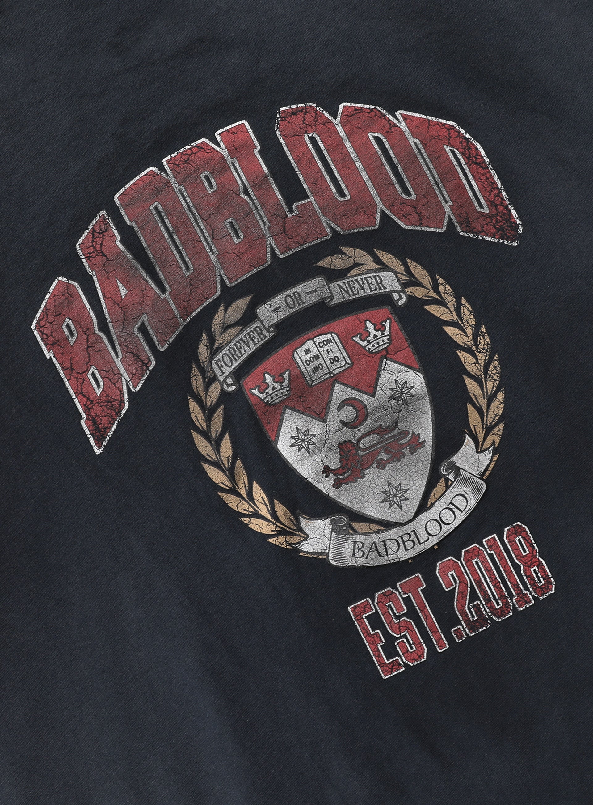 - 正面 Badblood 月桂树徽章印花 logo,袖子 Badblood 印花 logo