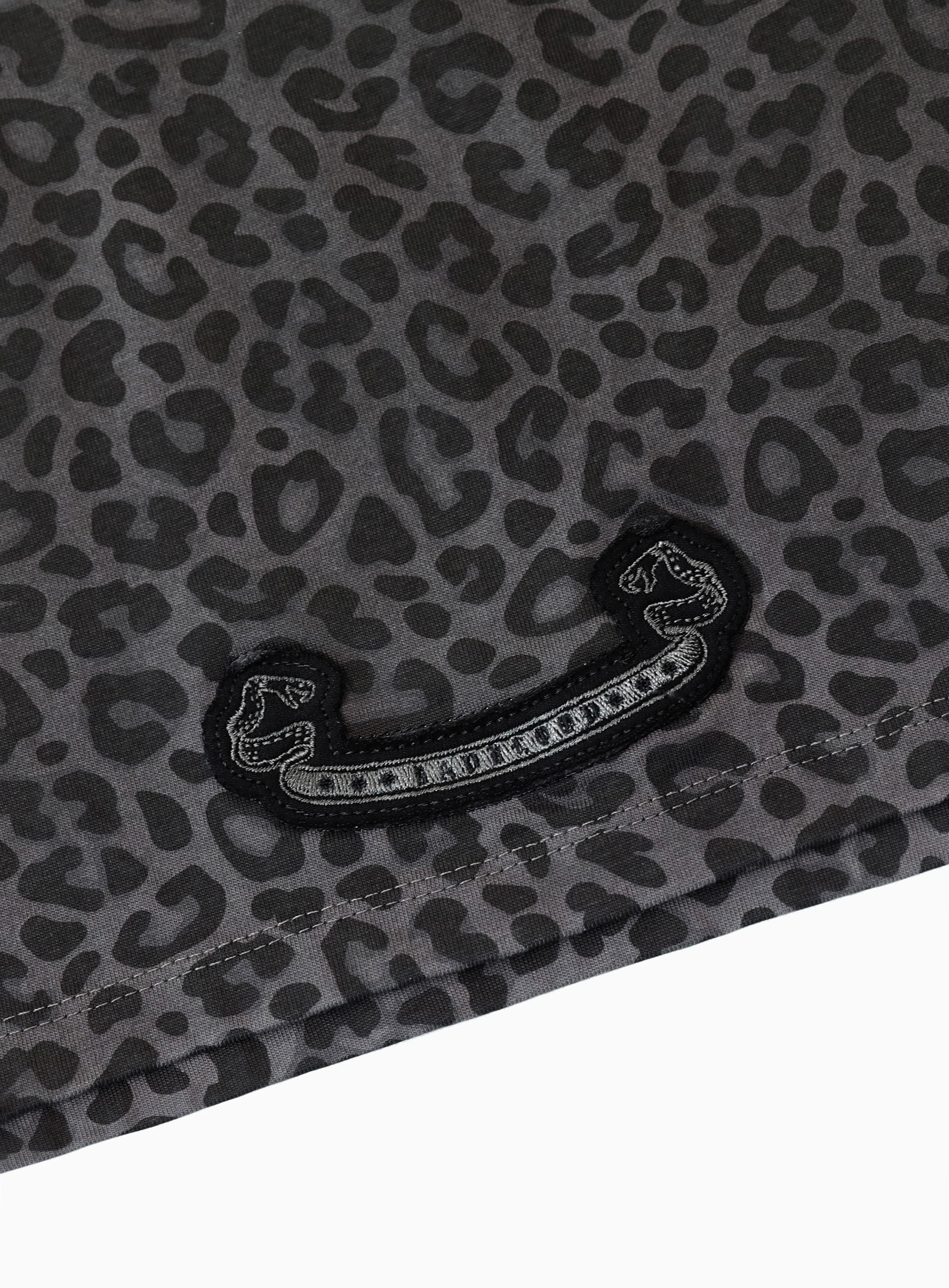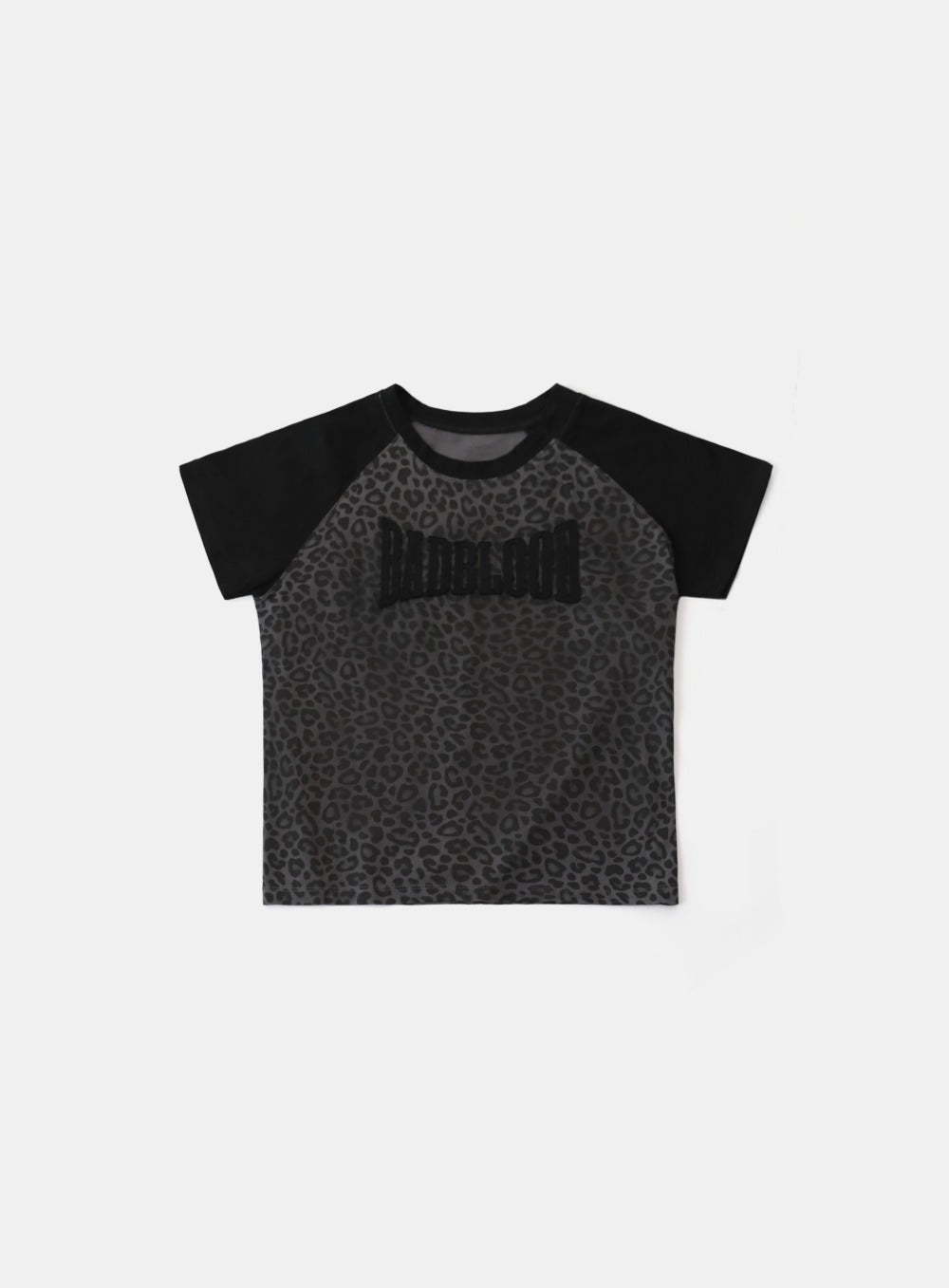 [w-tee25-068] 对比配色短袖上衣 - 黑色豹纹