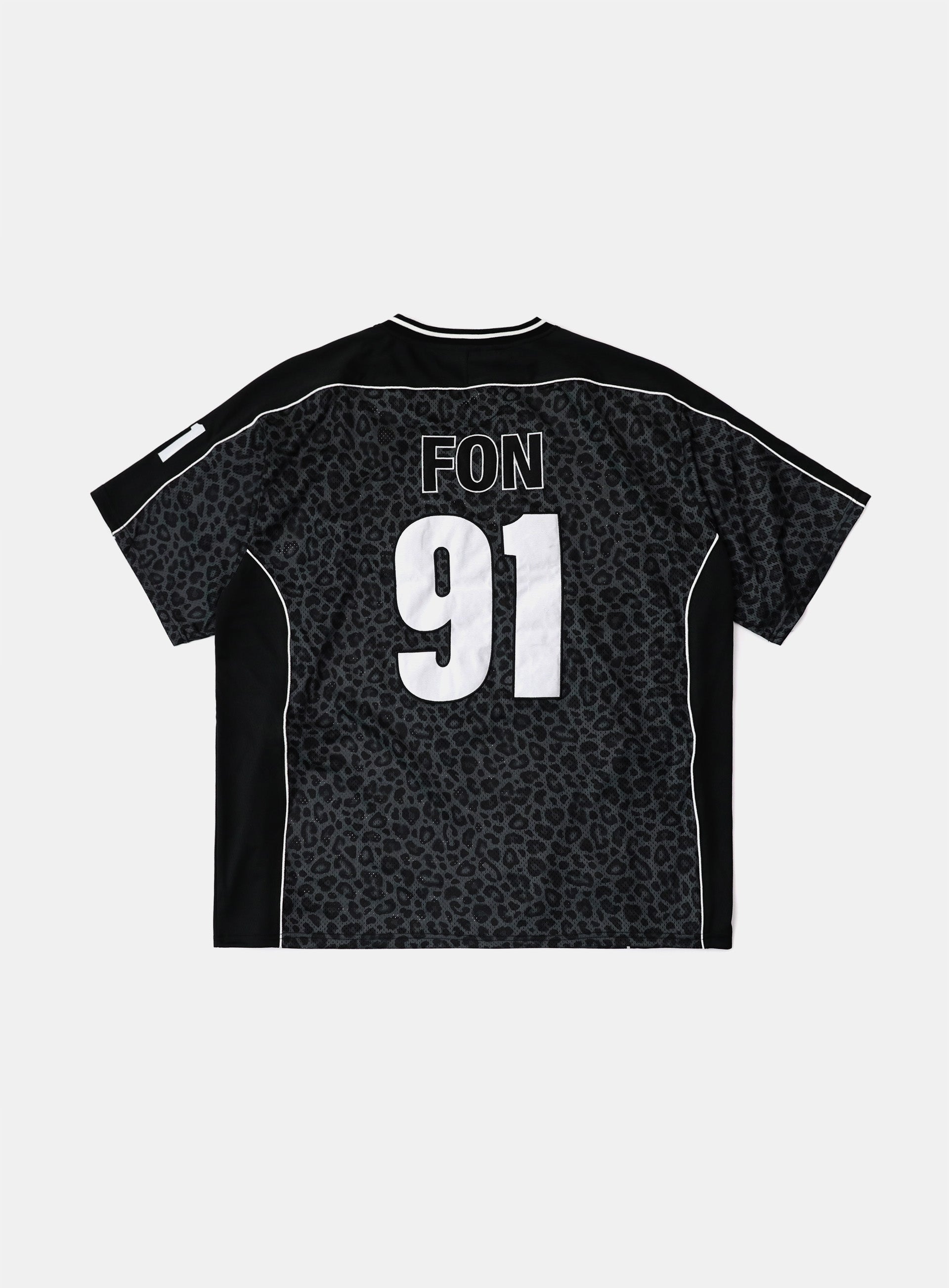 [w-tee25-075] FON V领球衣短袖 - 黑色豹纹
