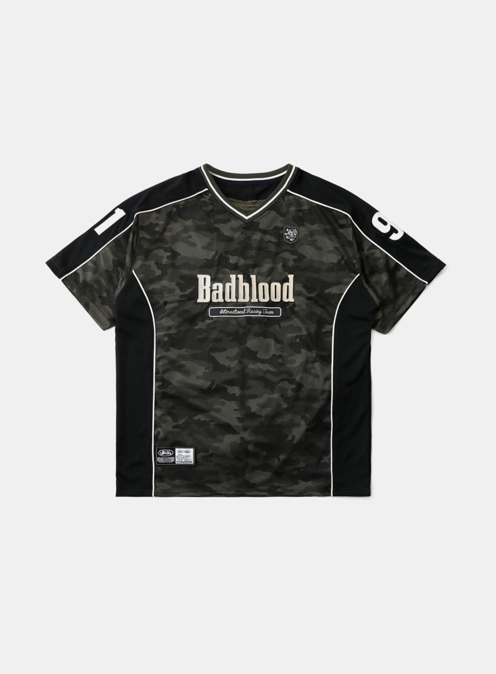 背面有大号数字补丁,下摆有 Badblood 证书体标识。