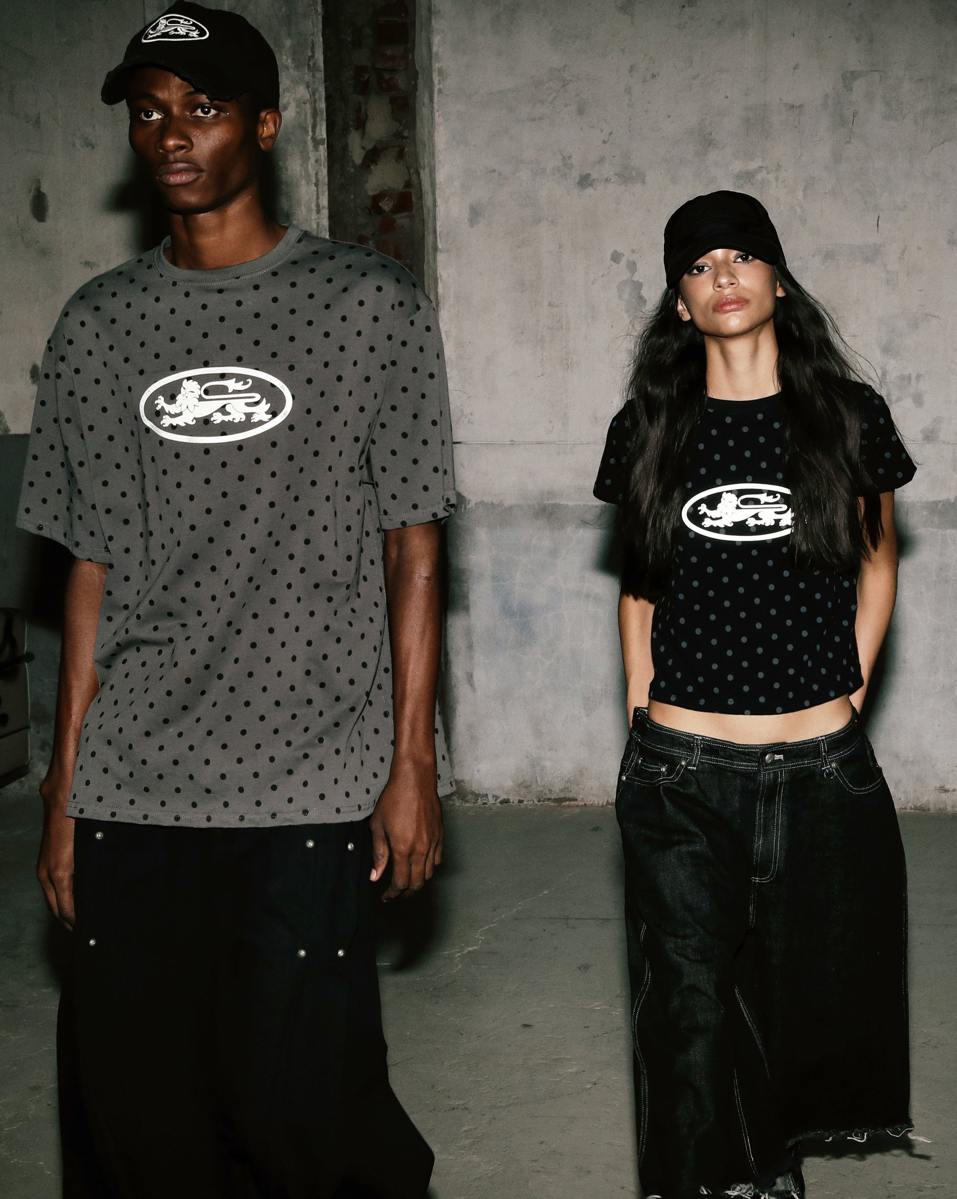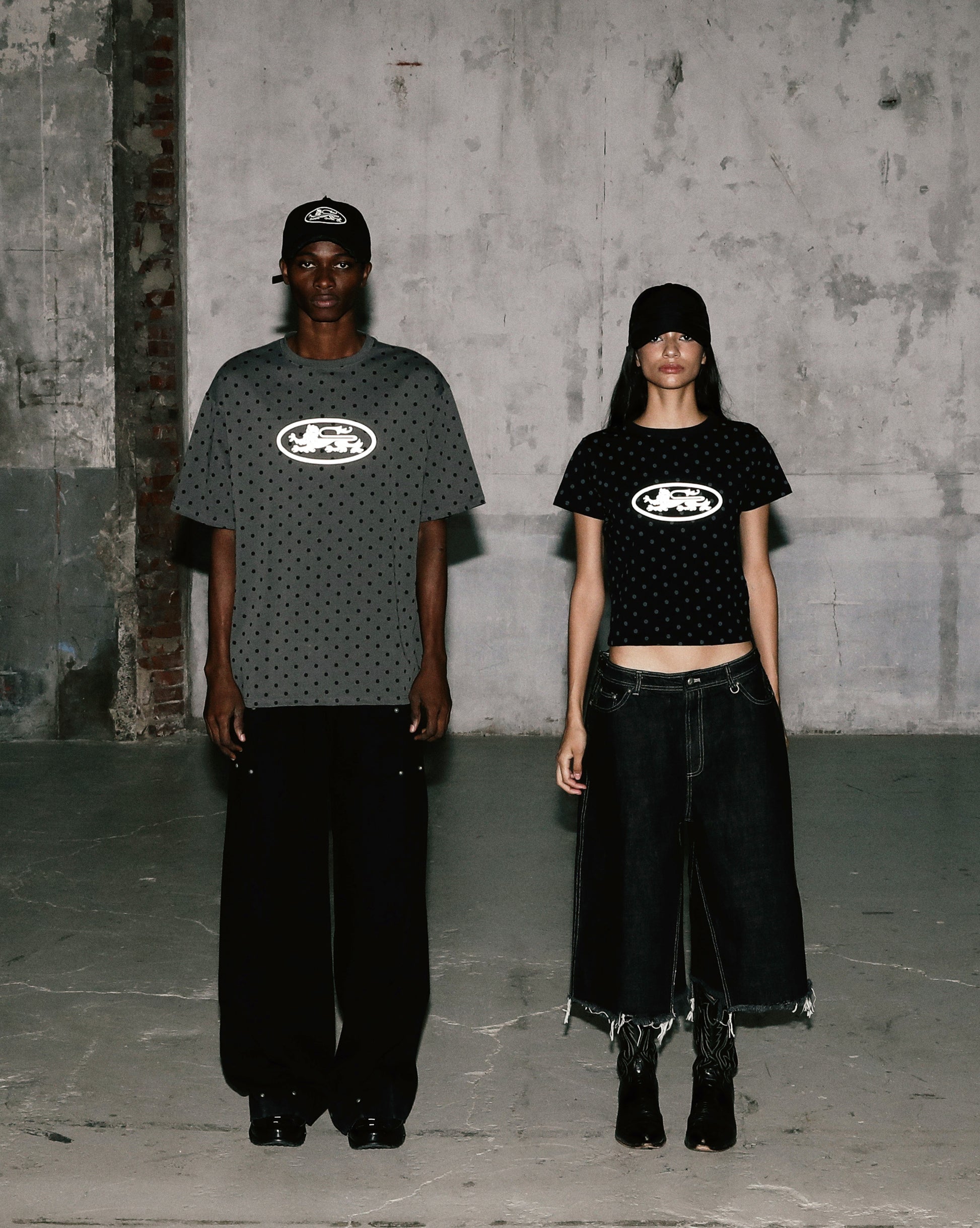 采用顶级有机棉制作,上面的圆点图案与街头风格反光印花尤为醒目的神秘基础款 T 恤。