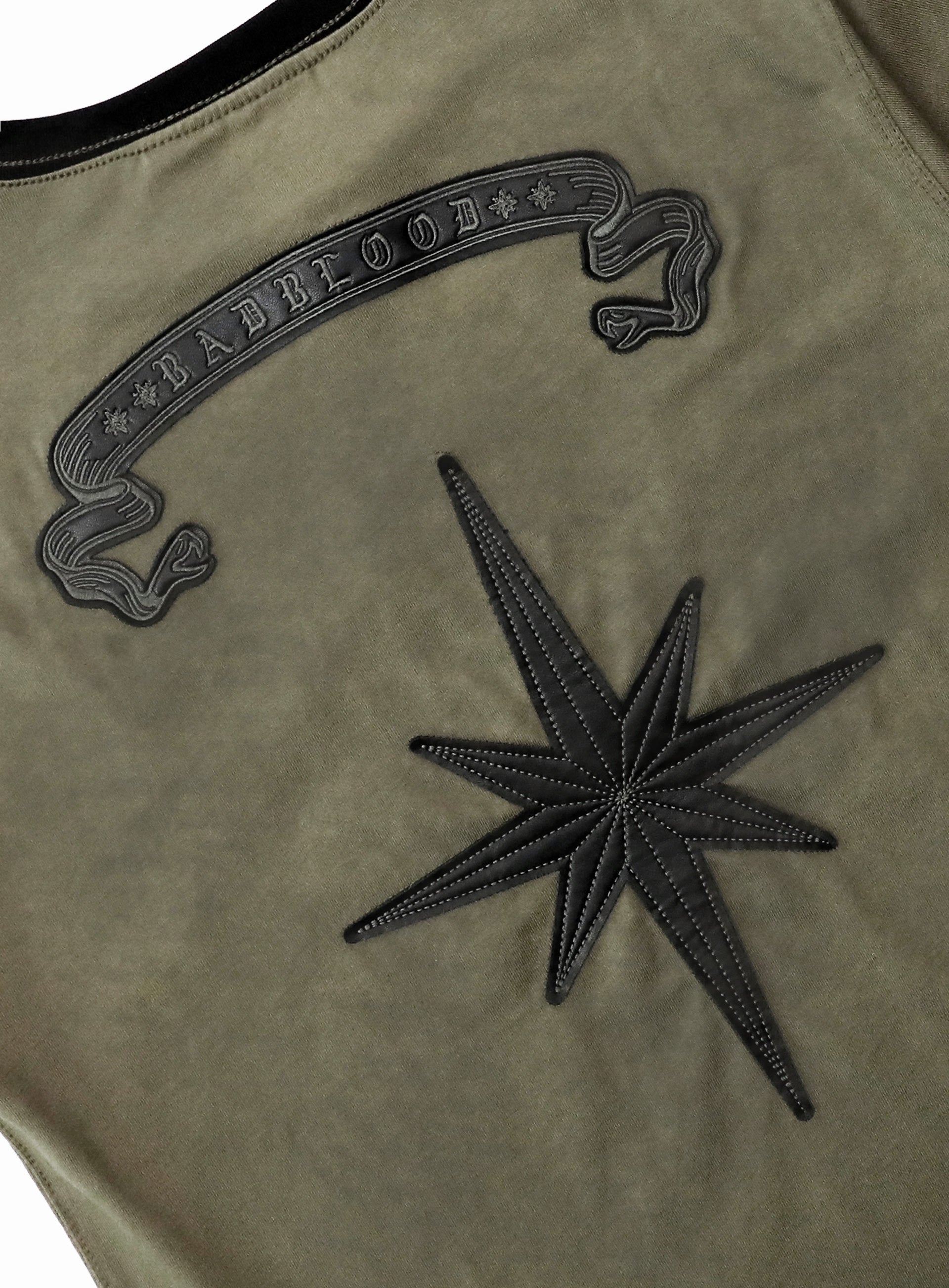 - 背面大号 Badblood 宇宙皮革补丁、下摆 Badblood 横幅皮革补丁