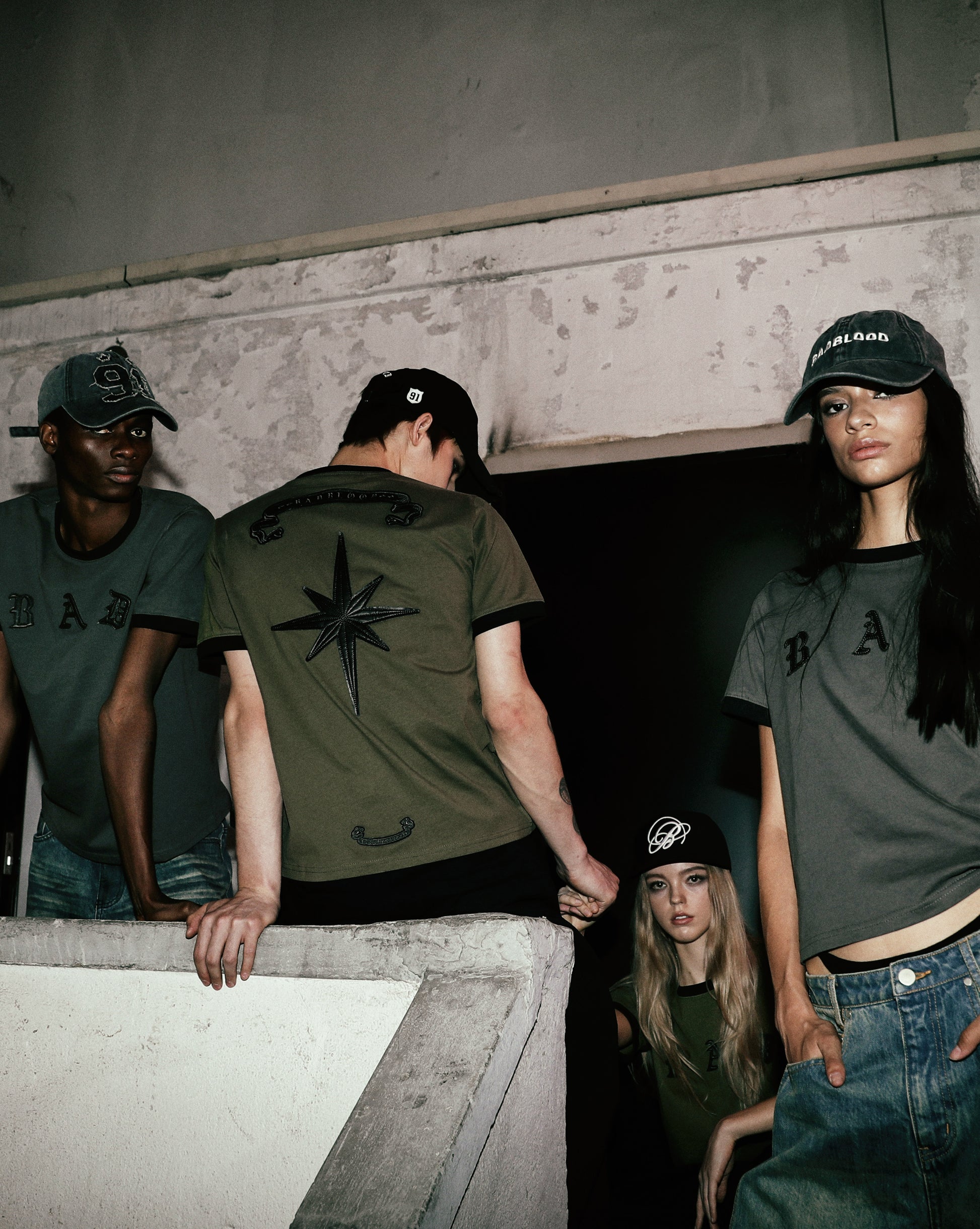 正面有标志性 BAD 皮革补丁,背面有大号 Badblood 宇宙皮革补丁,下摆有 Badblood 横幅皮革补丁。