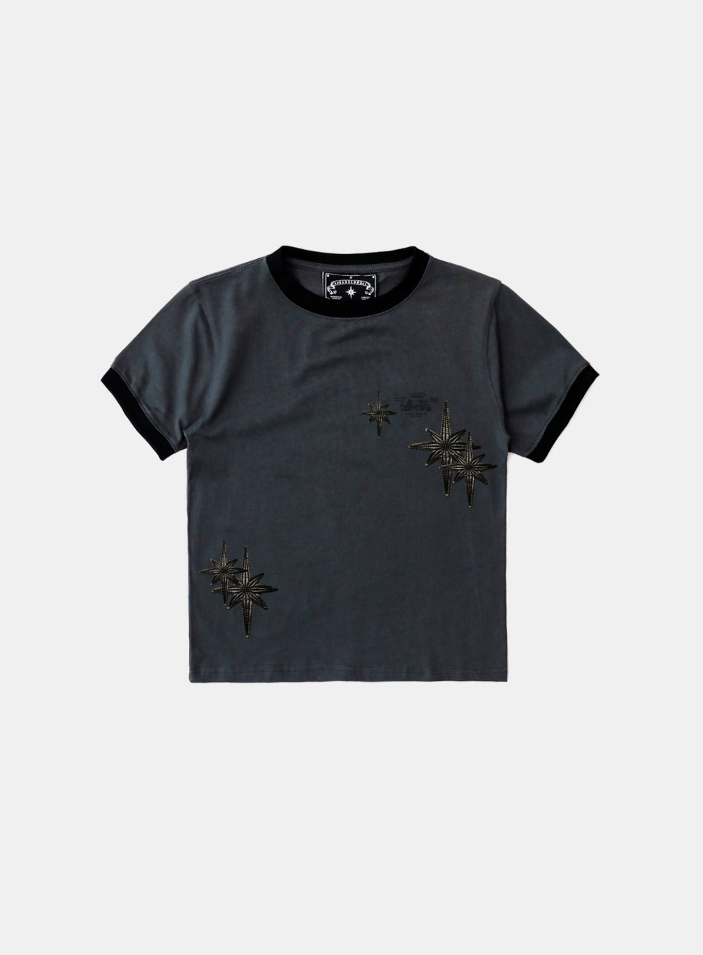 [w-tee25-092] Cosmo 多贴布拼色T恤 - 炭灰色