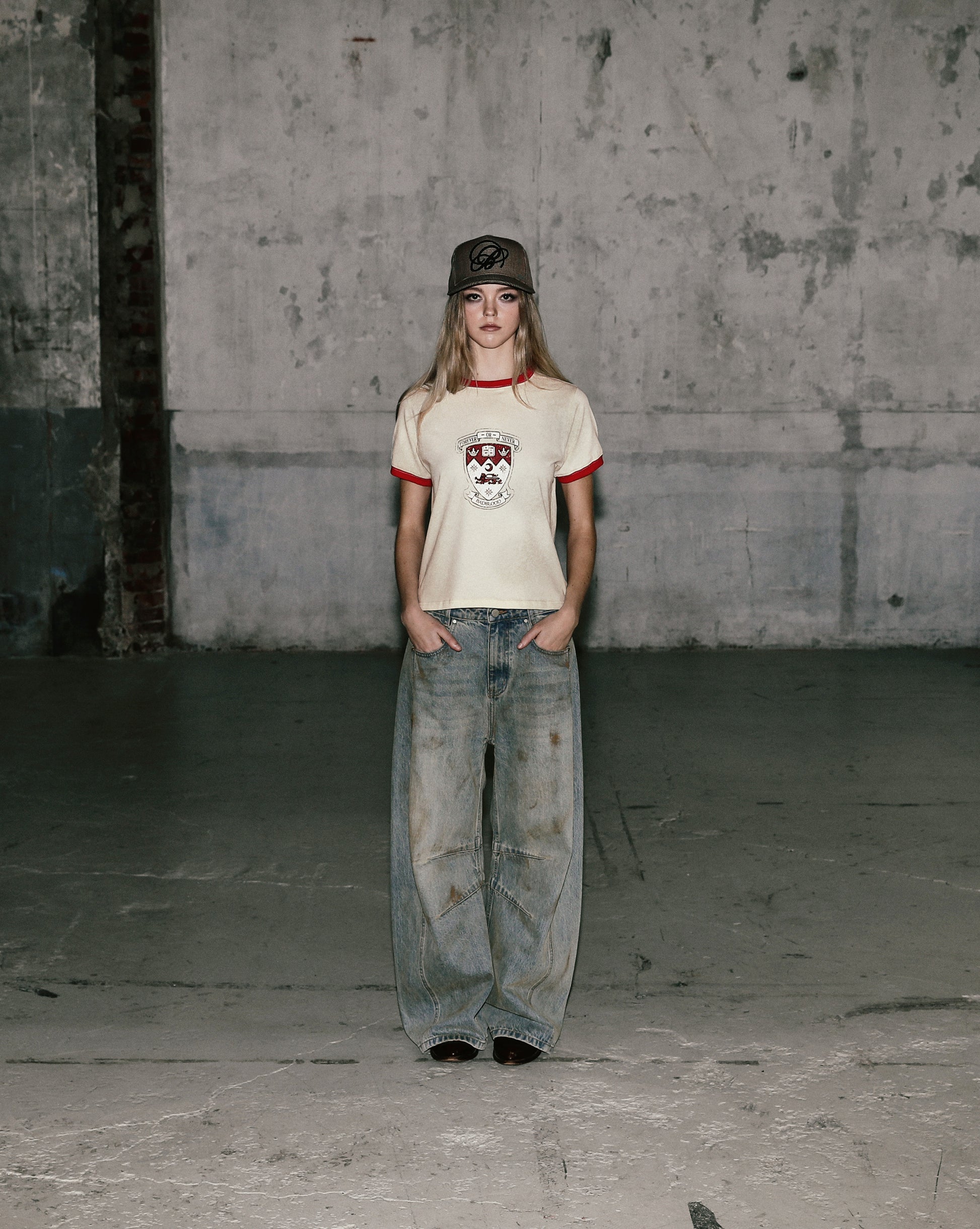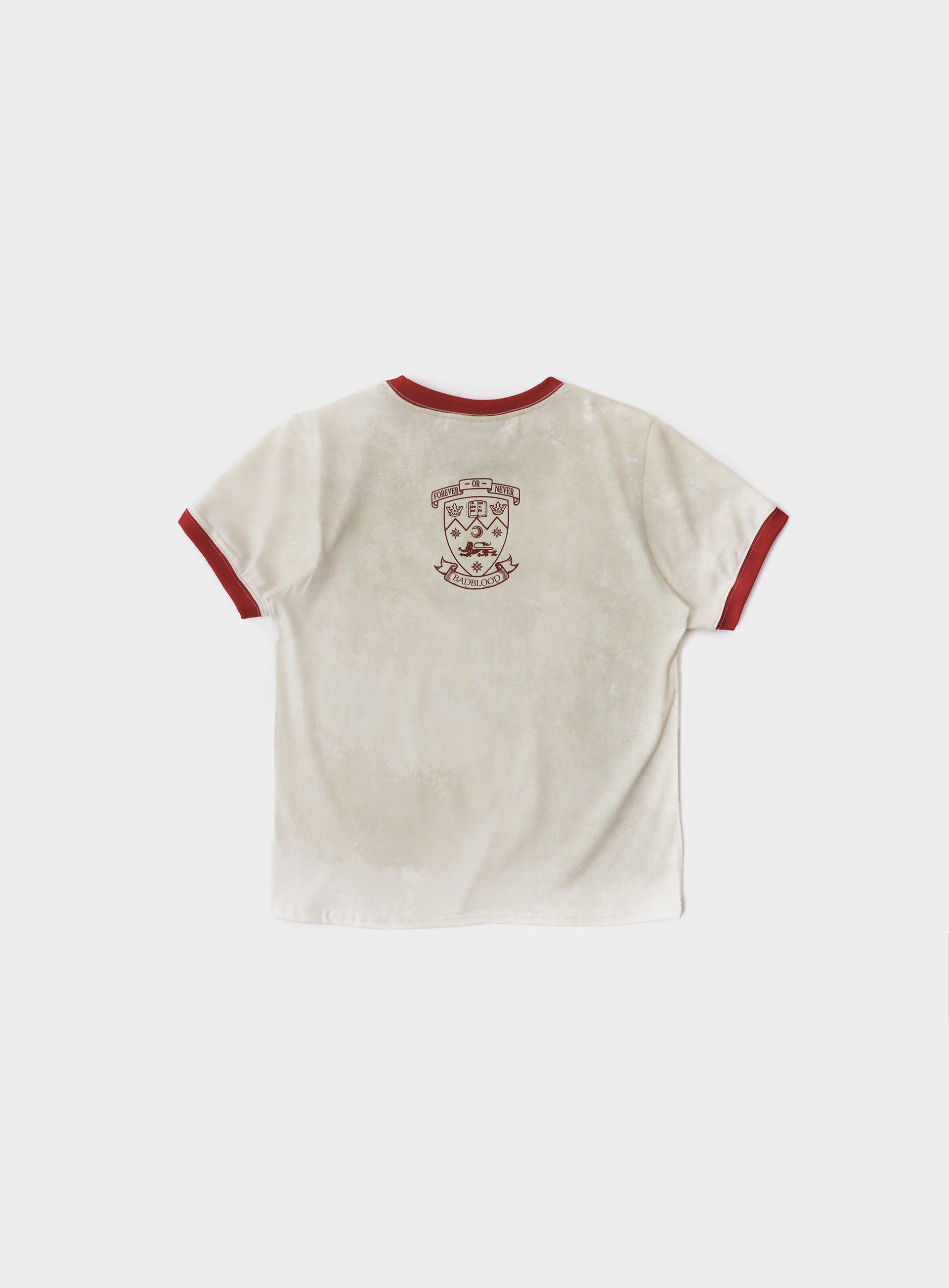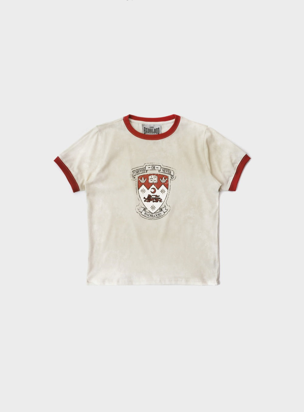 [w-tee25-096] Workshop 盾牌印花 罗纹边T恤 - 奶油色