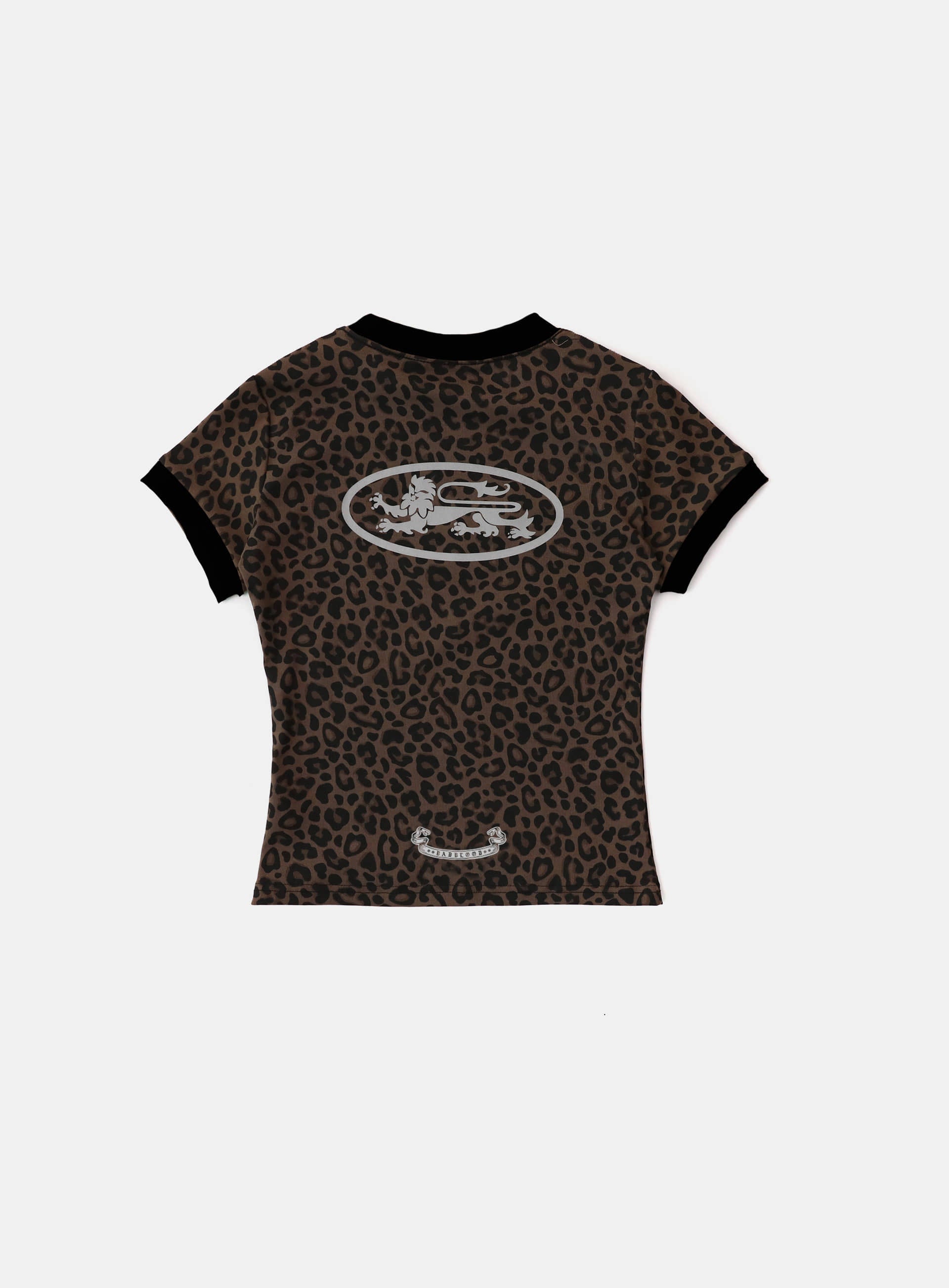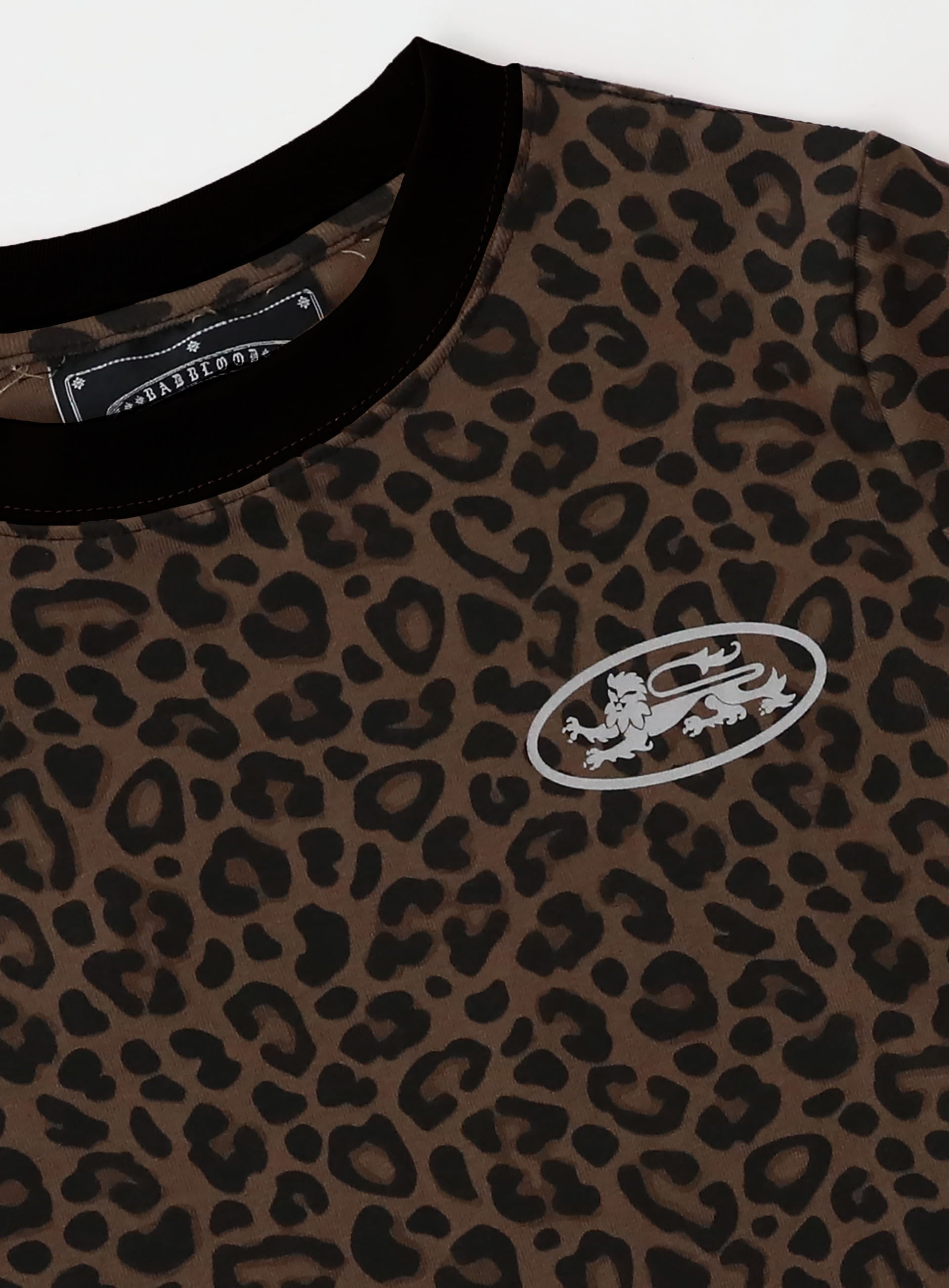 街头风格的豹纹图案搭配醒目的反光印花,尽显魅力的神秘露背标识运动环领 T 恤。