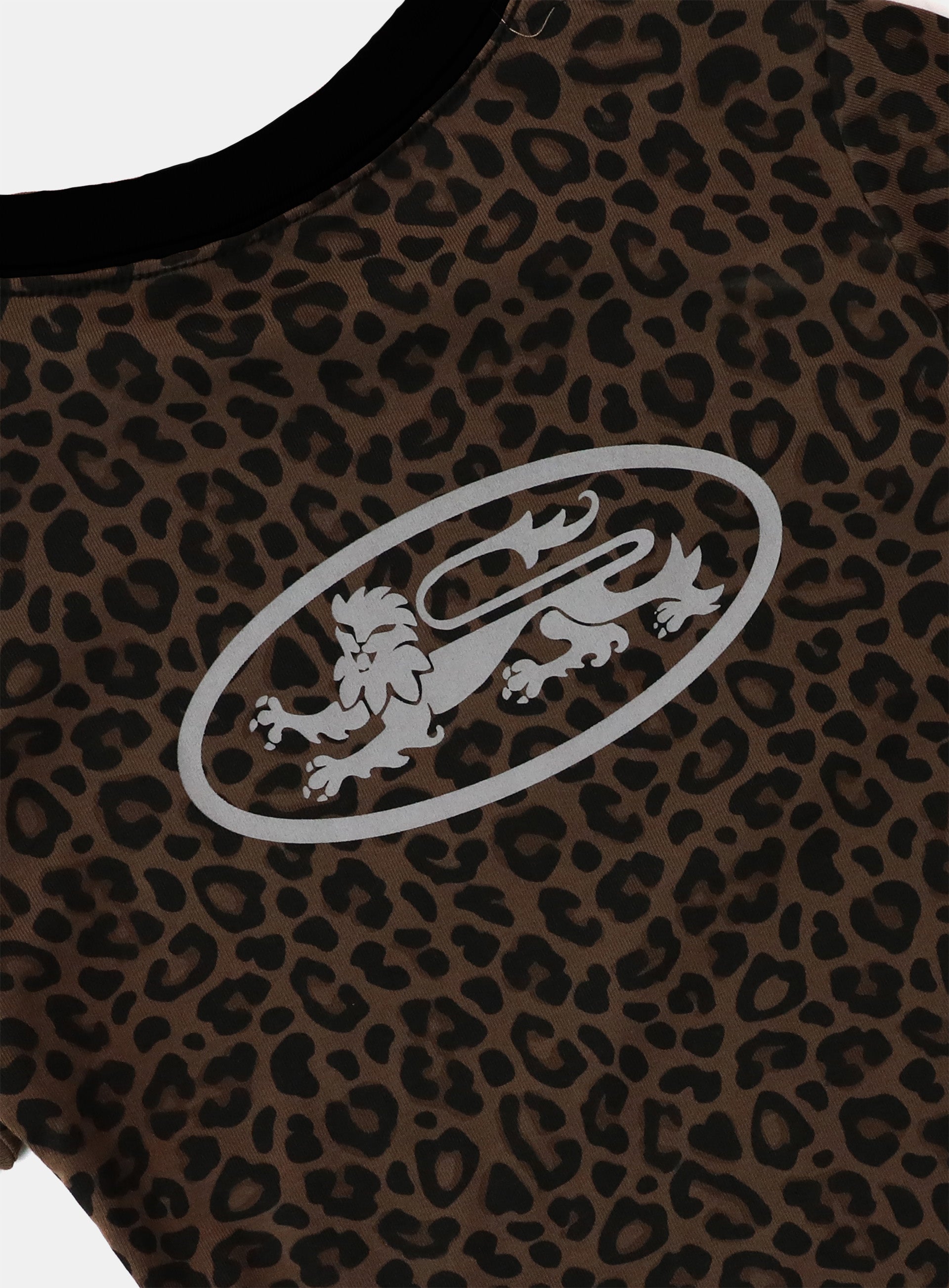 [w-tee25-099] Mystic 椭圆标志运动拼色T恤 - 棕色豹纹