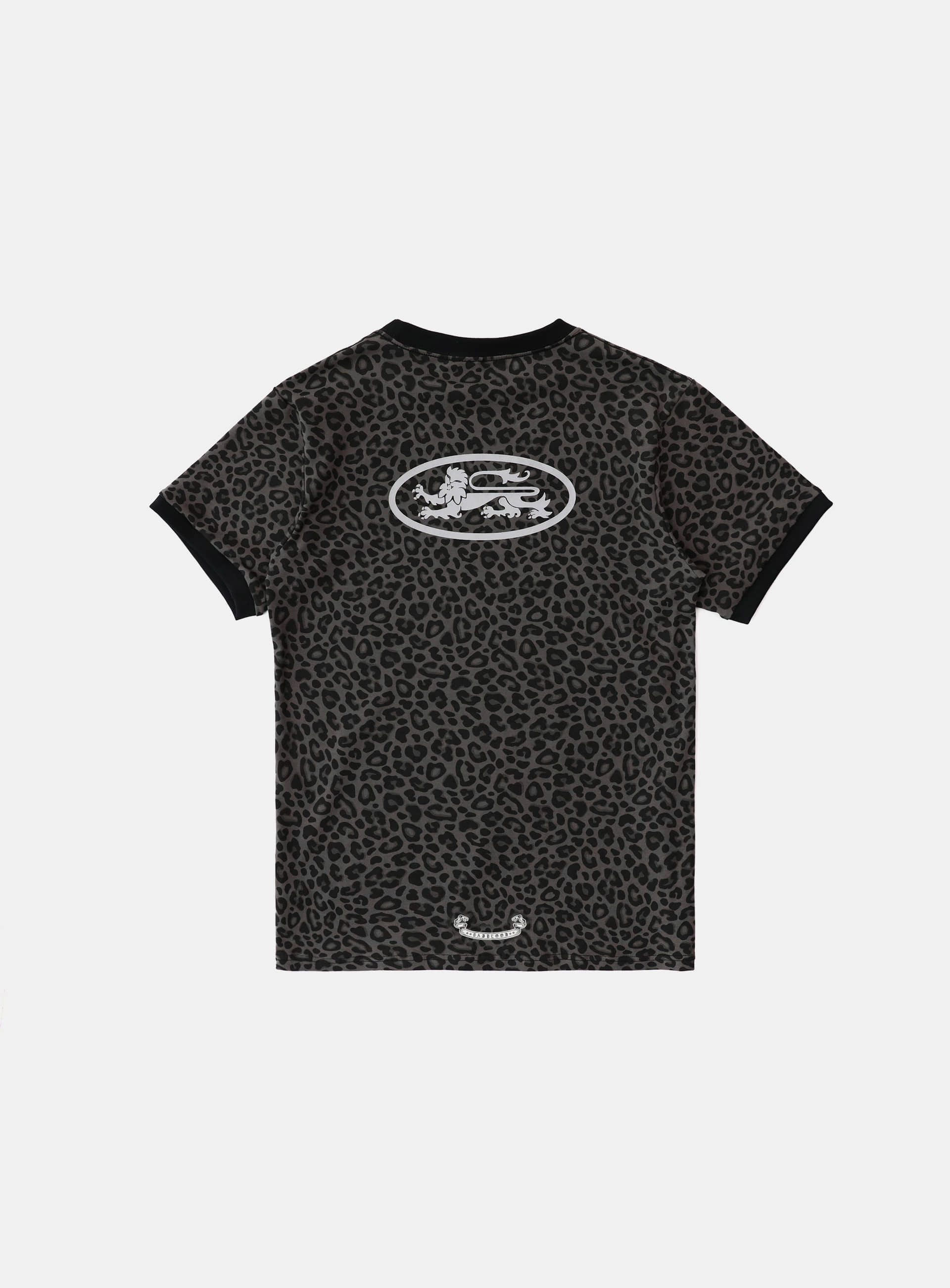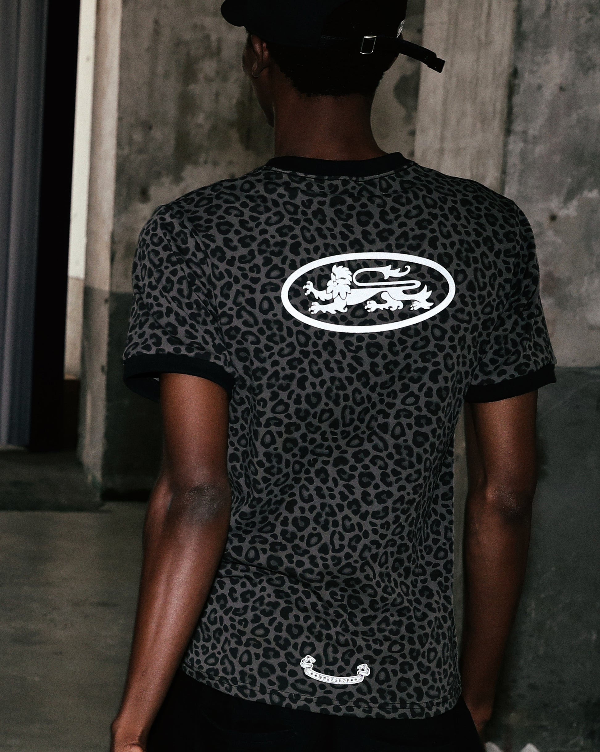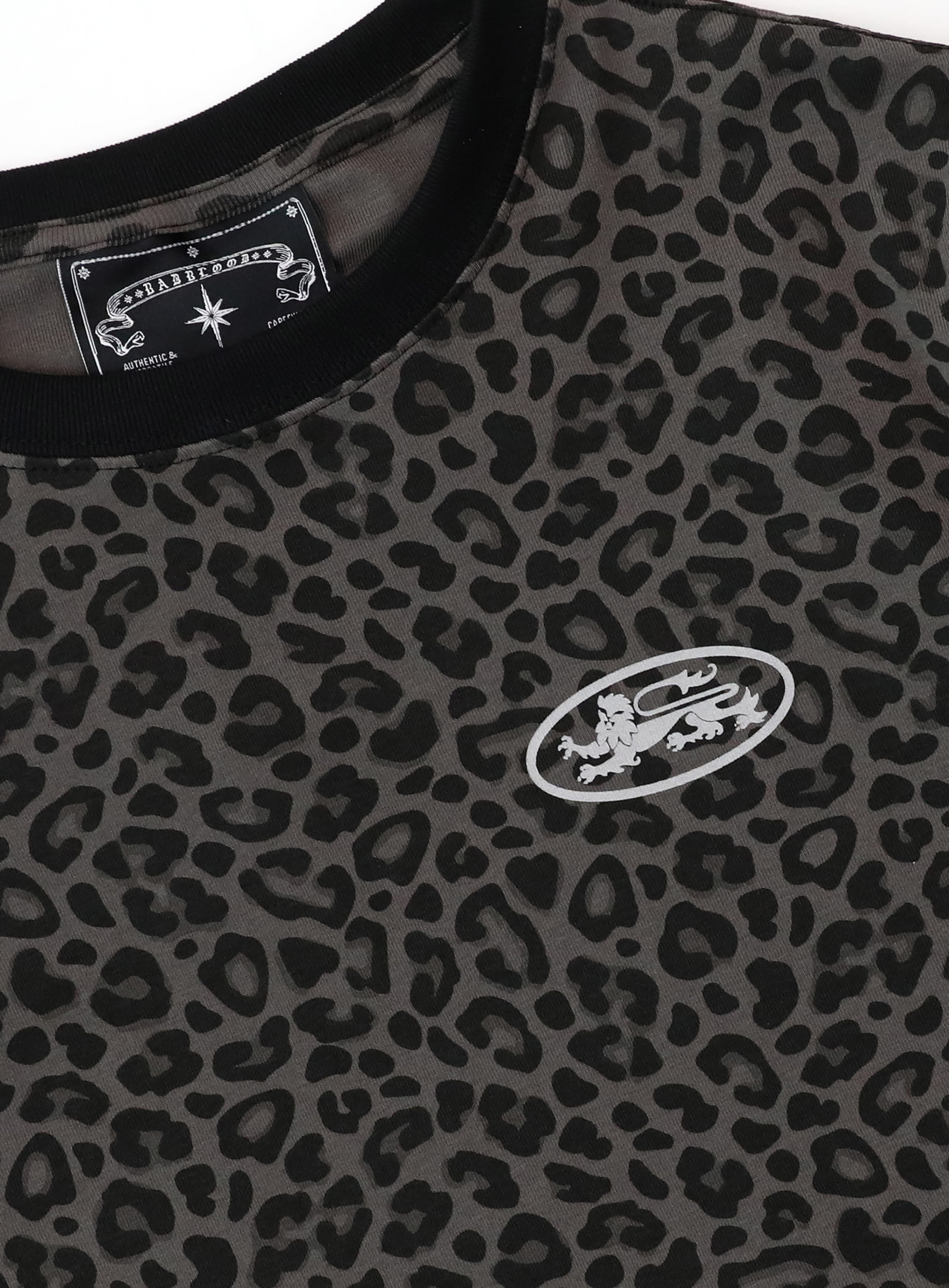 街头风格的豹纹图案搭配醒目的反光印花,尽显魅力的神秘露背标识运动环领 T 恤。