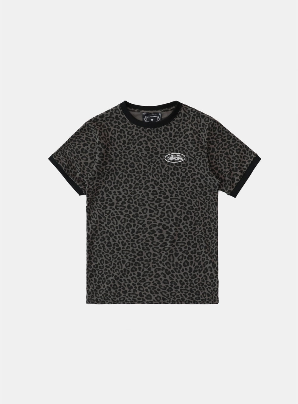 [w-tee25-100] Mystic 椭圆标志运动拼色T恤 - 黑色豹纹