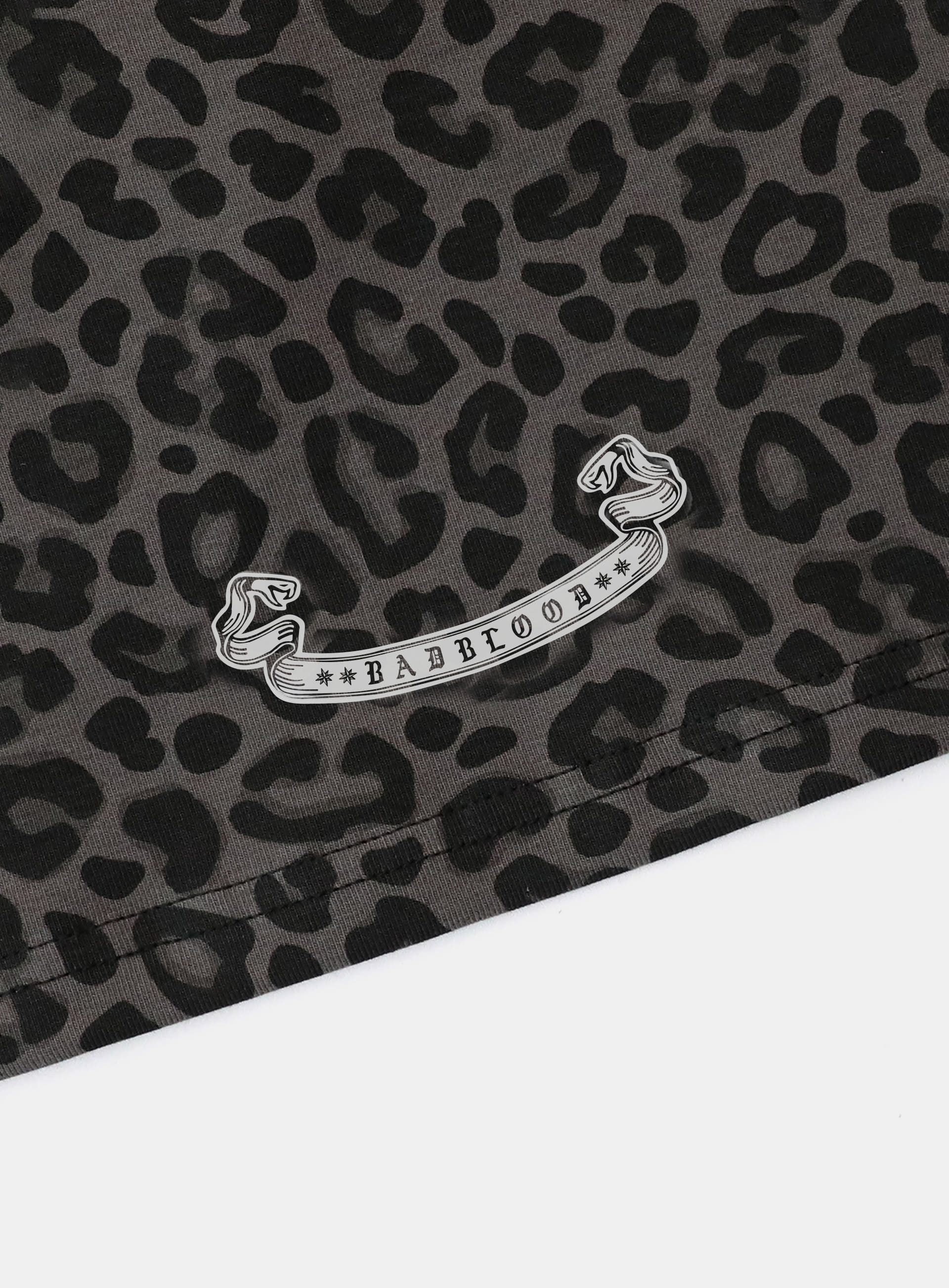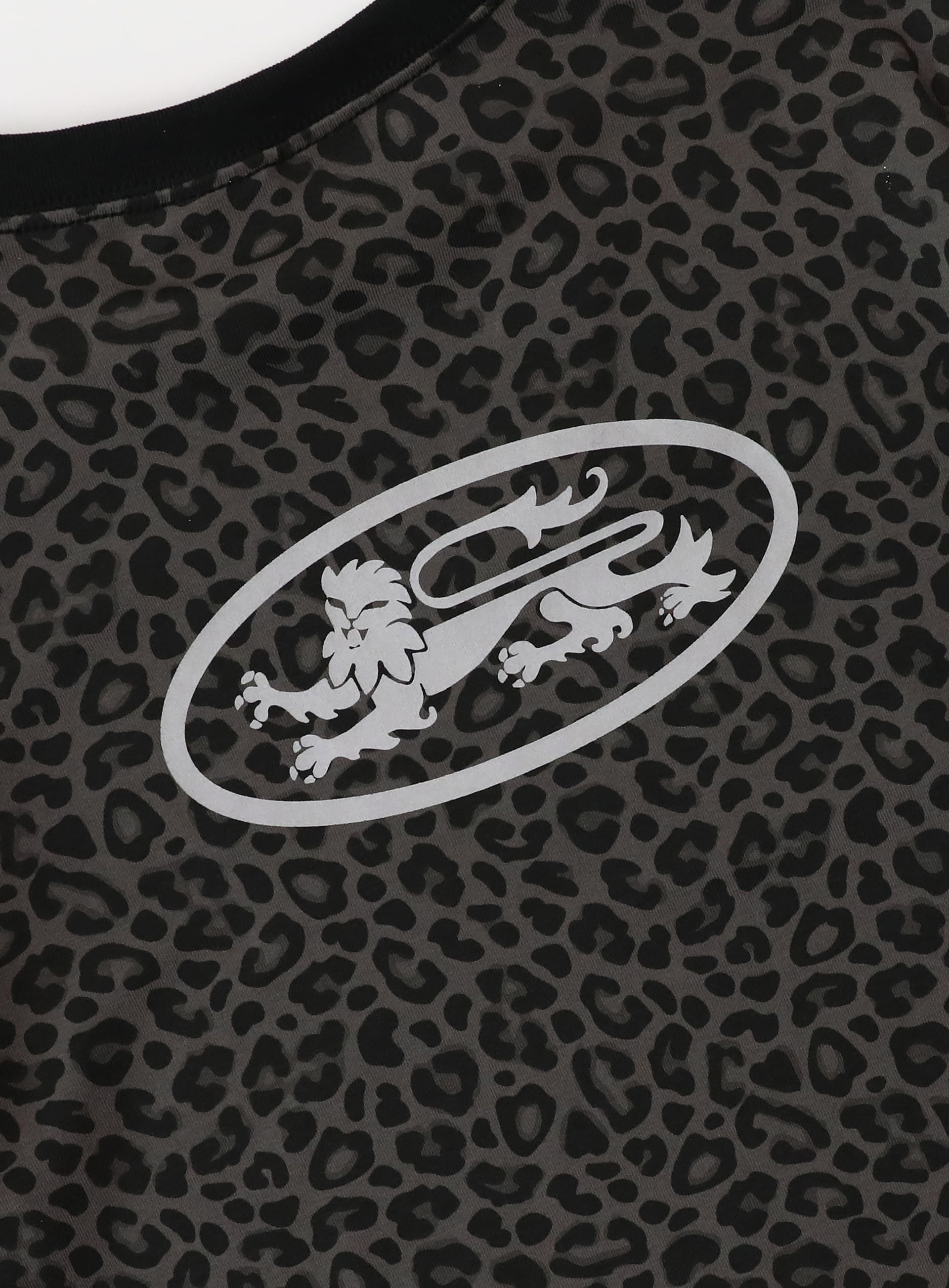 街头风格的豹纹图案搭配醒目的反光印花,尽显魅力的神秘露背标识运动环领 T 恤。