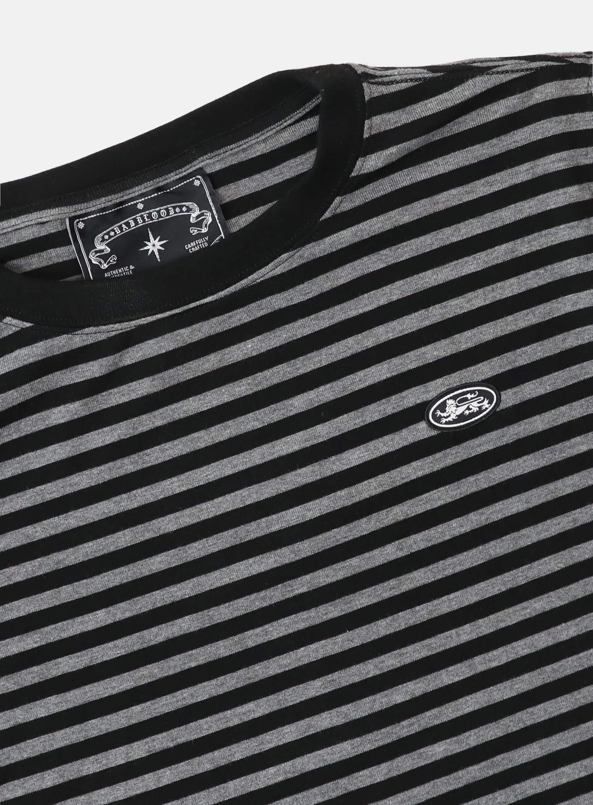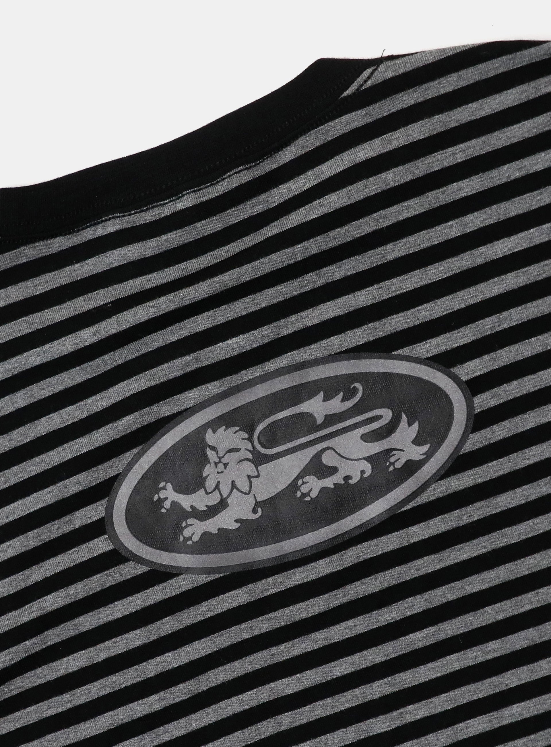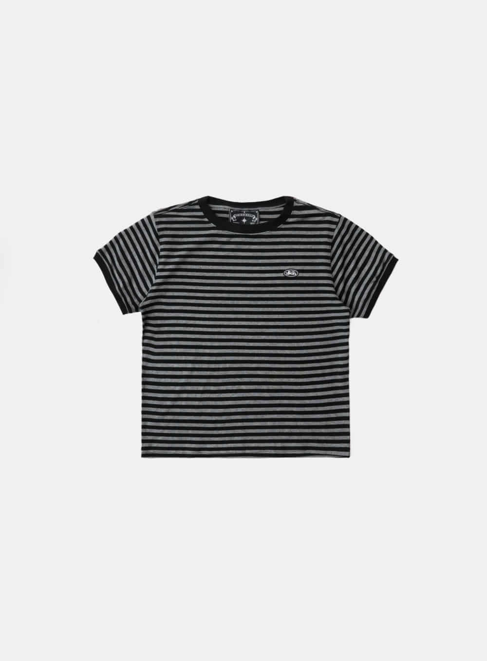 [w-tee25-102] Tiny Logo 运动拼色T恤 - 黑色条纹