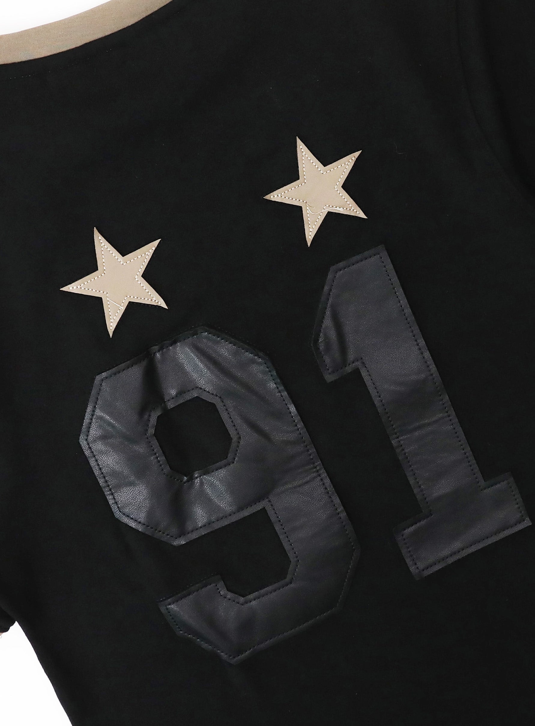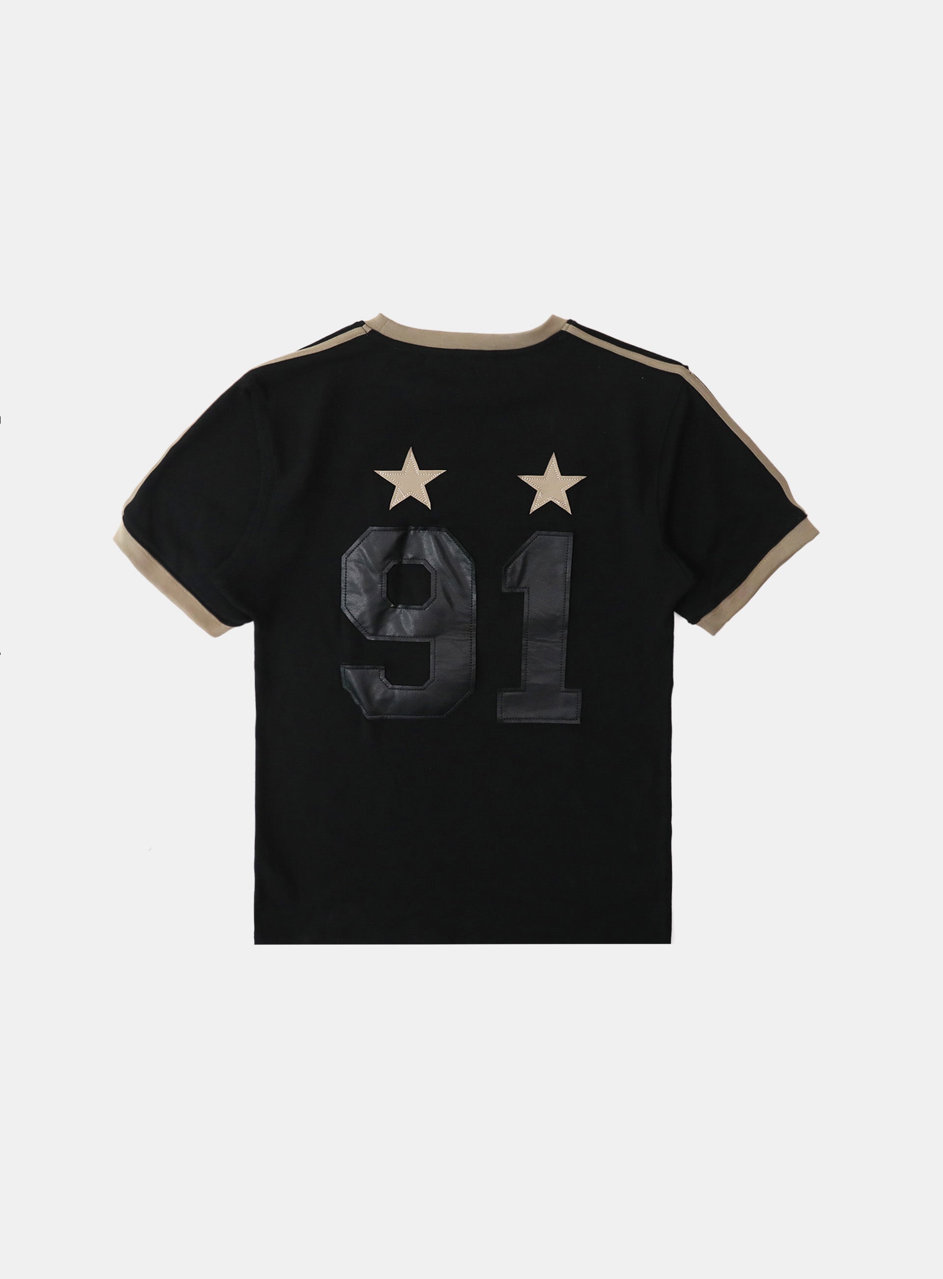 [w-tee25-107] 复古俱乐部运动拼色T恤 - 黑色