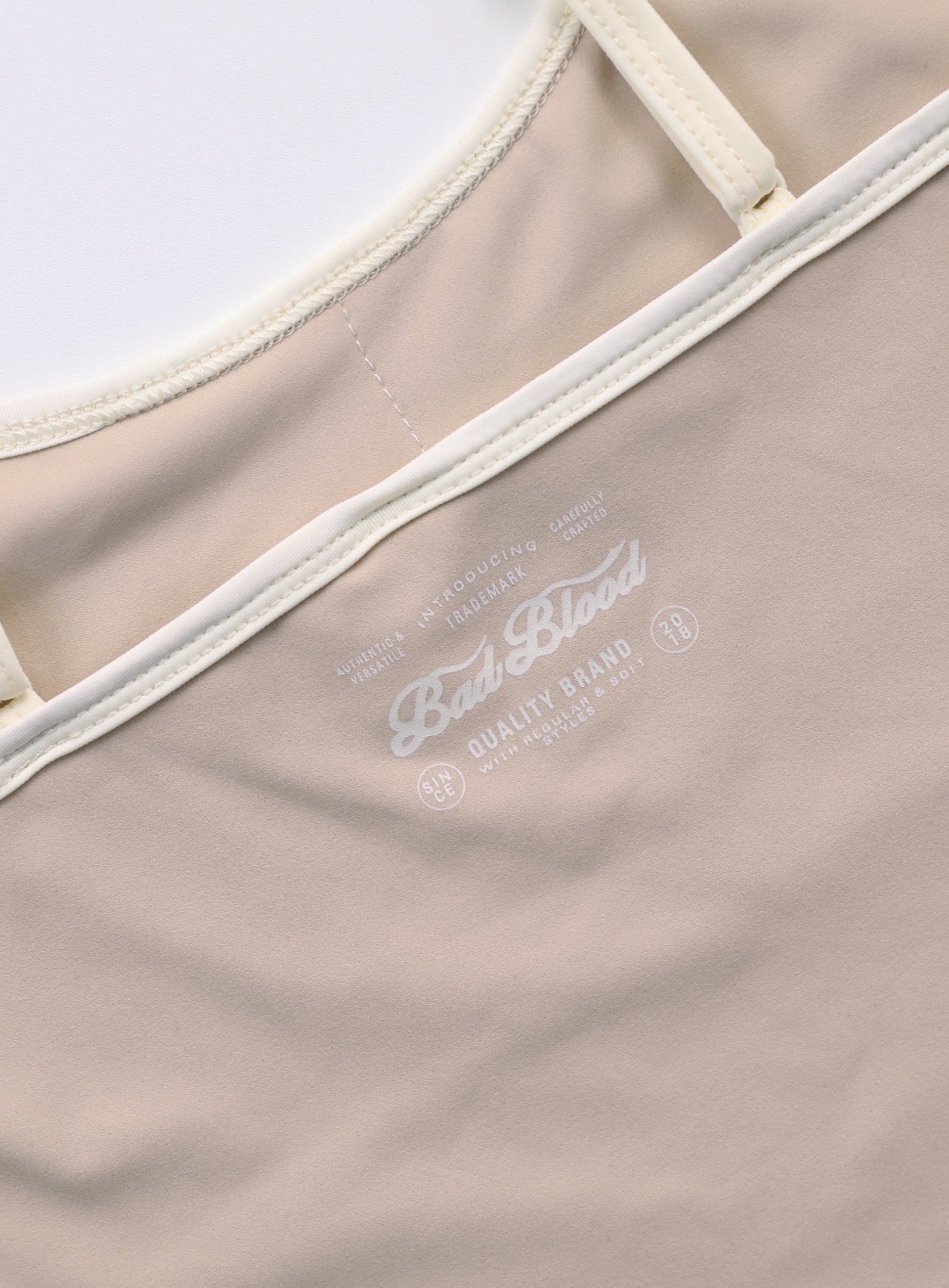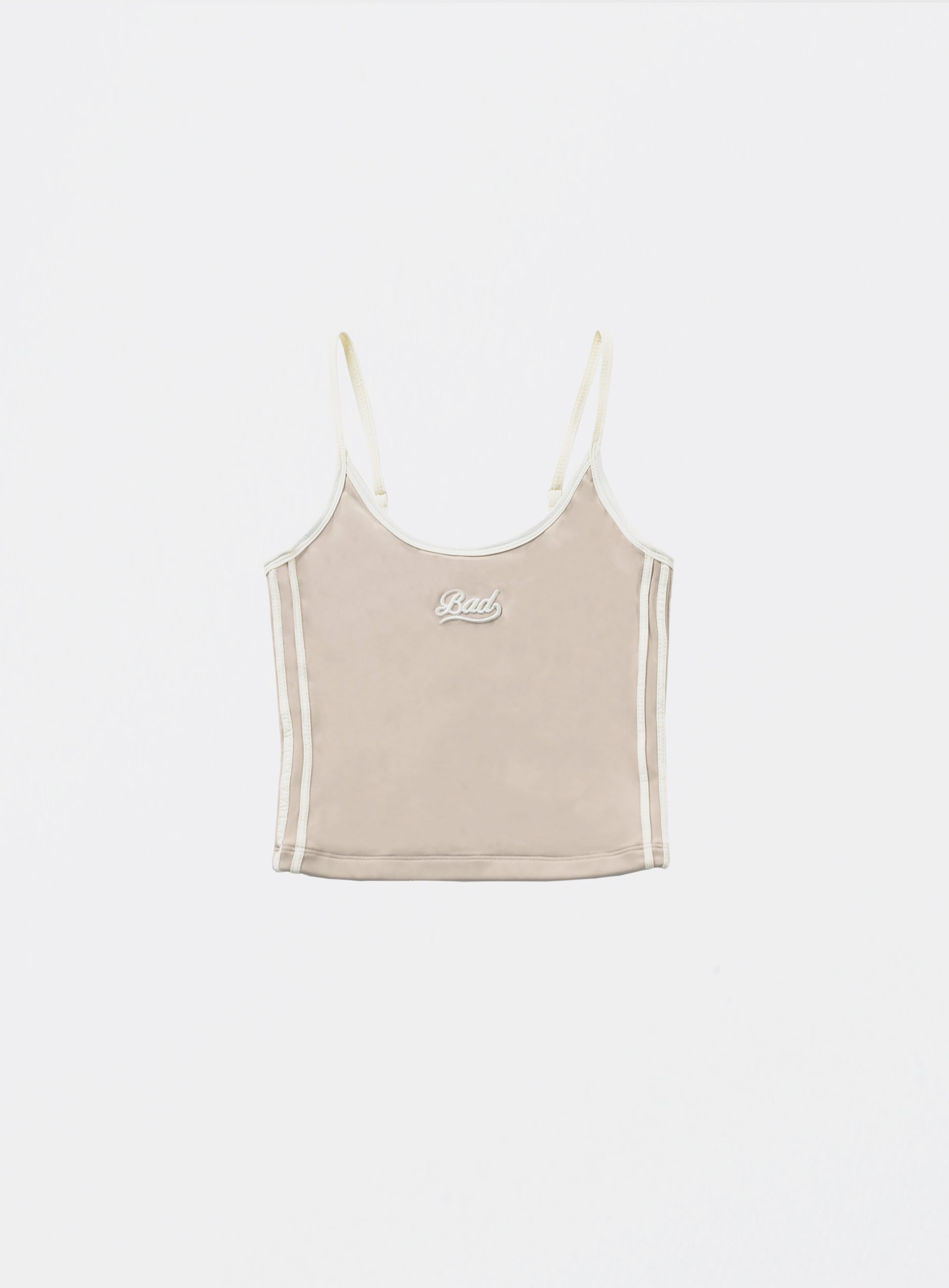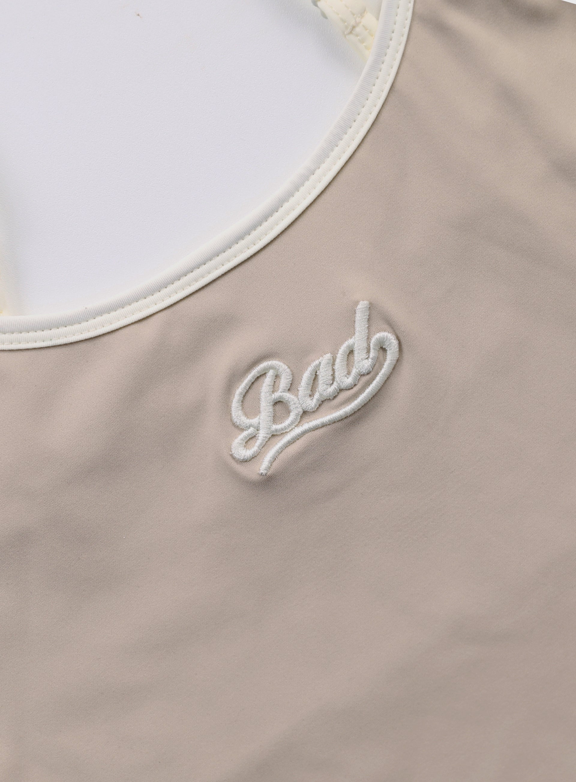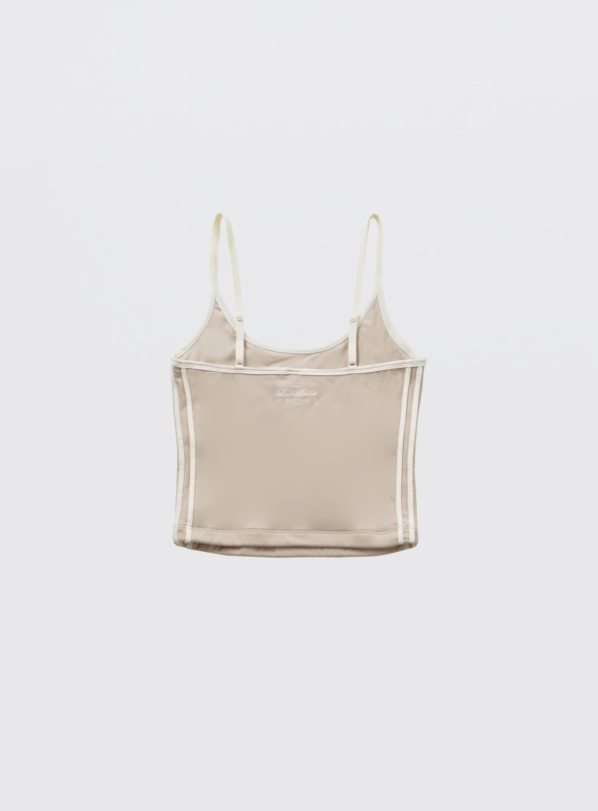 运动风格设计与复古配色的Wendy细肩带坦克背心。采用高弹性和韧性的聚酰胺与氨纶混纺材料,贴身舒适。腋下和领口采用罗纹收边,侧面有对比色四线设计,肩带可调节长度。前面中央有“Bad”标志,背面印有“Badblood Authentic”字样。