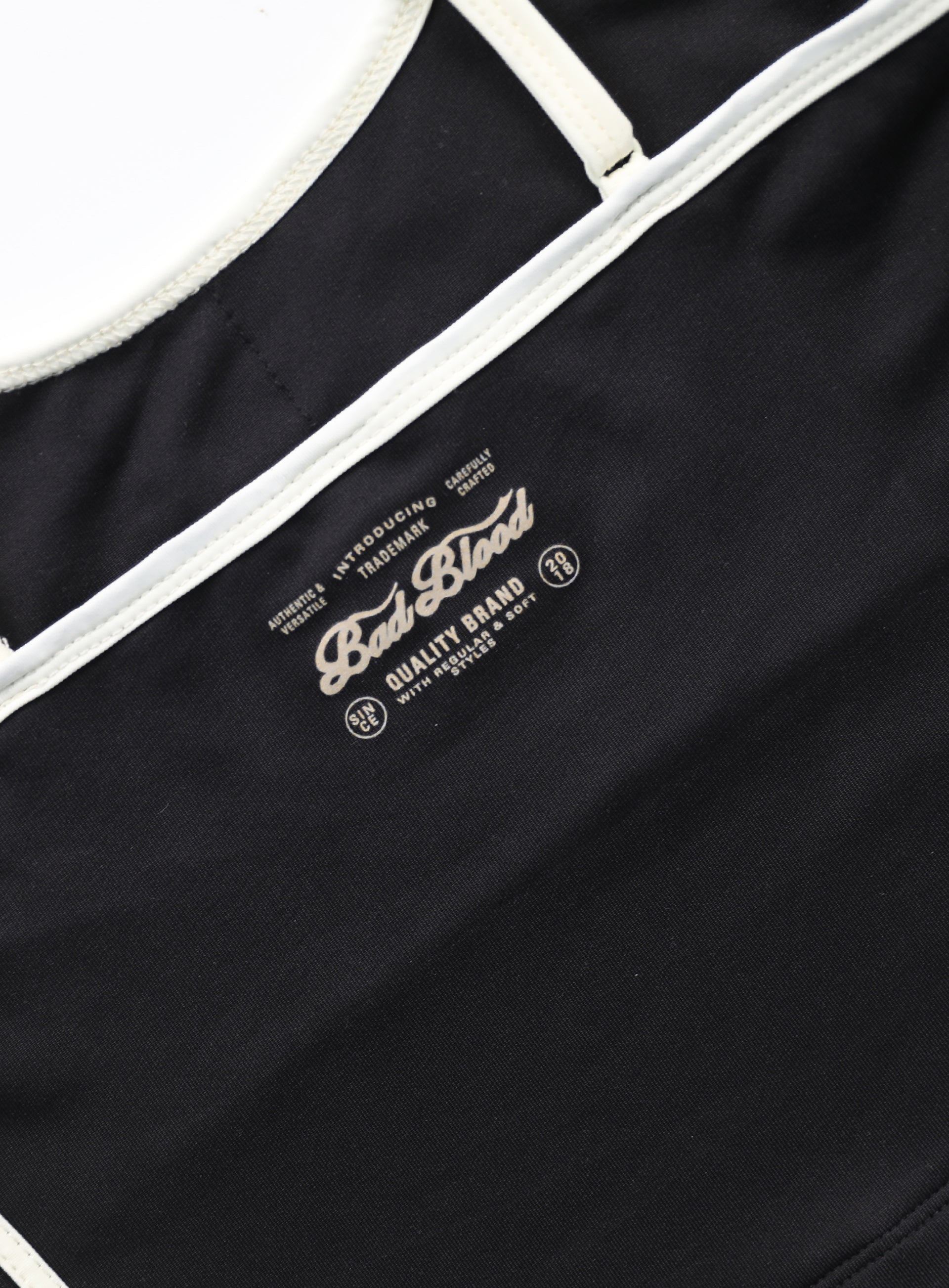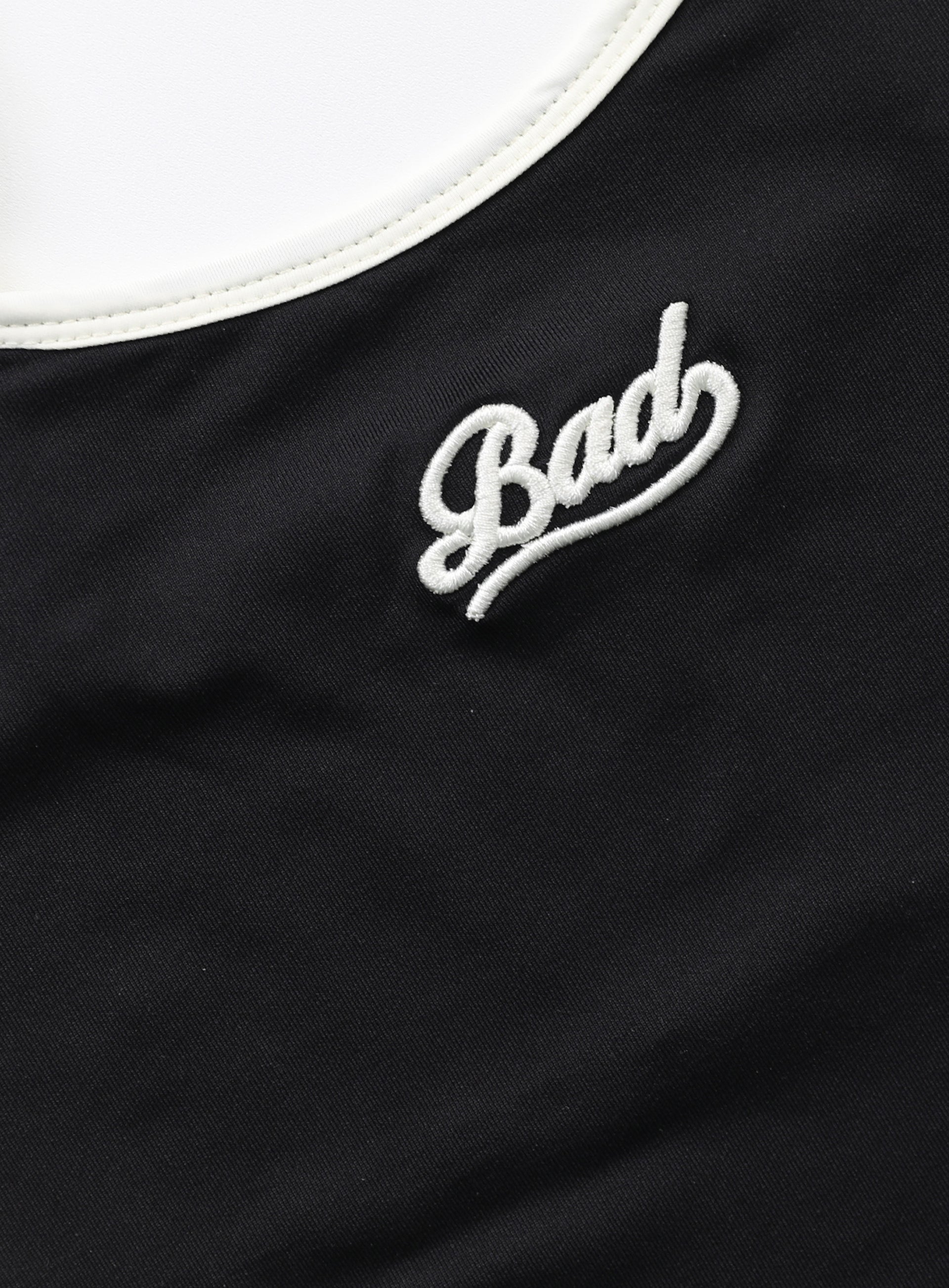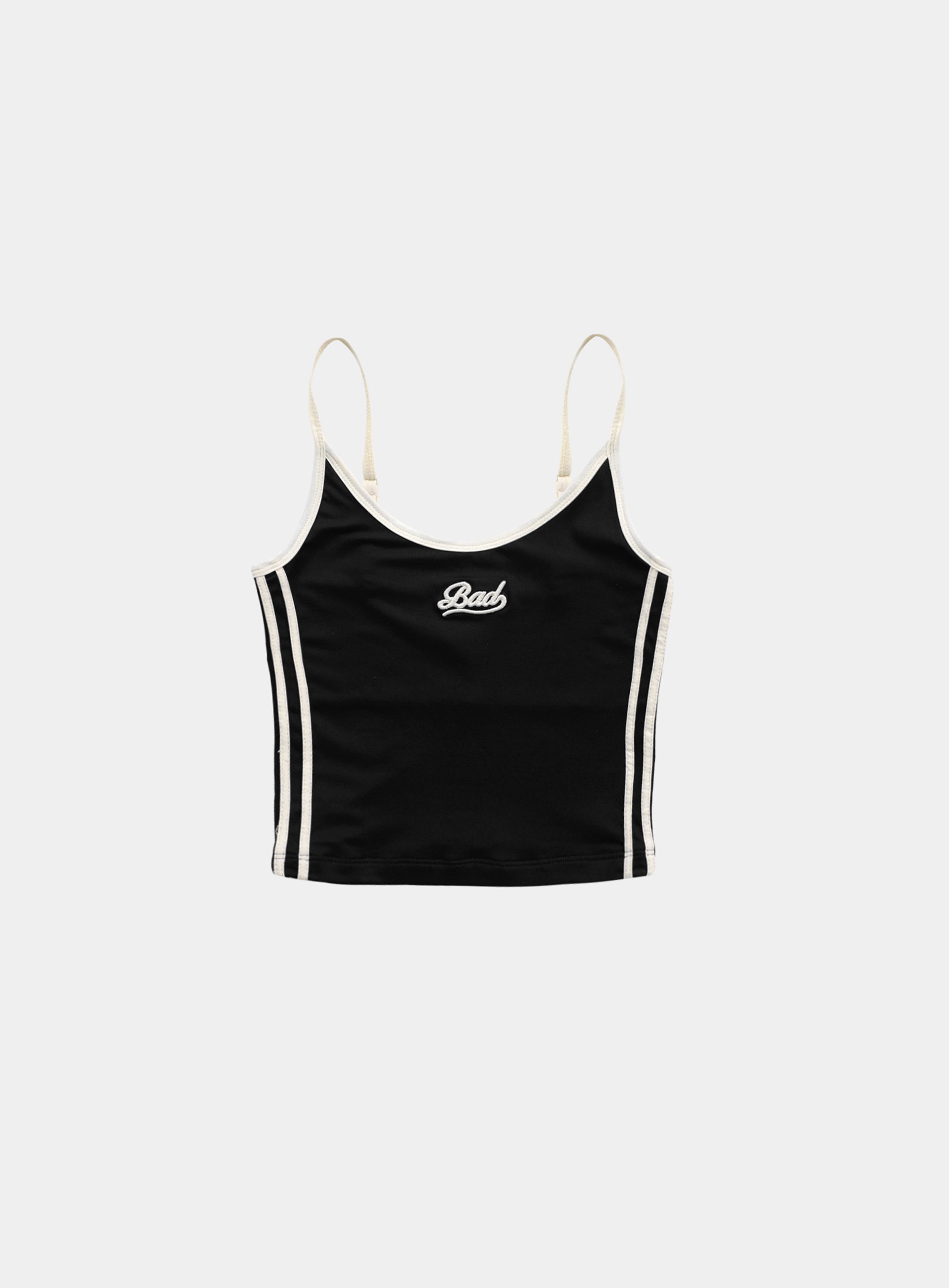 运动风格设计与复古配色的Wendy细肩带坦克背心。采用高弹性和韧性的聚酰胺与氨纶混纺材料,贴身舒适。腋下和领口采用罗纹收边,侧面有对比色四线设计,肩带可调节长度。前面中央有“Bad”标志,背面印有“Badblood Authentic”字样。