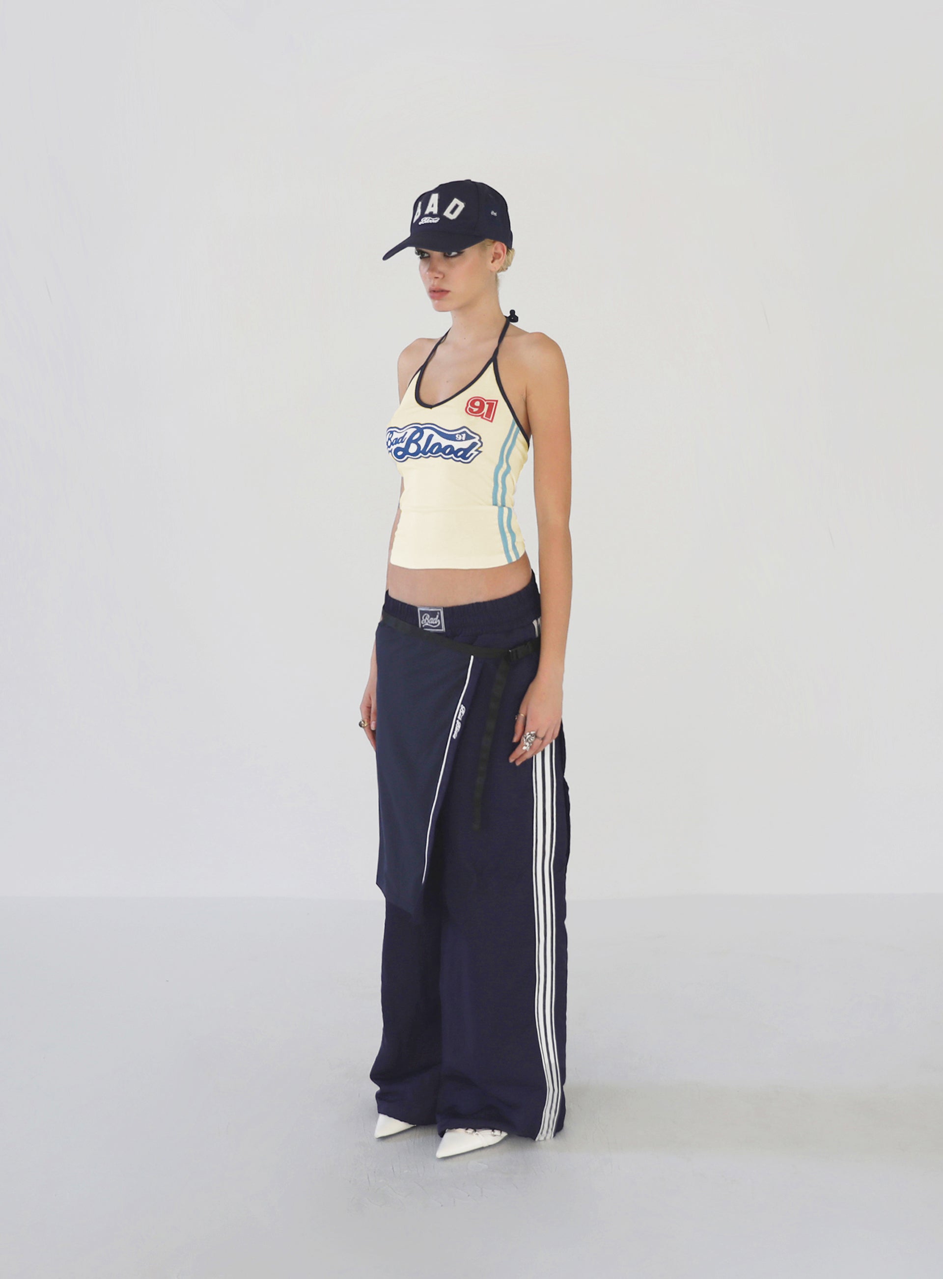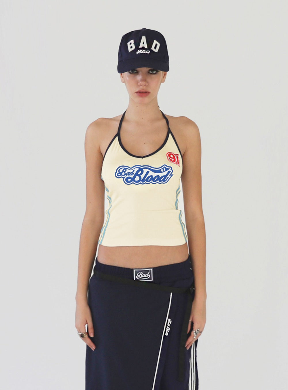 适合春夏季的运动风设计,带有复古色彩的Cindy露肩吊带背心。采用新型纤维莱赛尔和氨纶混纺面料,穿着凉爽舒适。前部有复古91印花,后部有Bad心形标志印花,侧面采用双色线条细节设计。