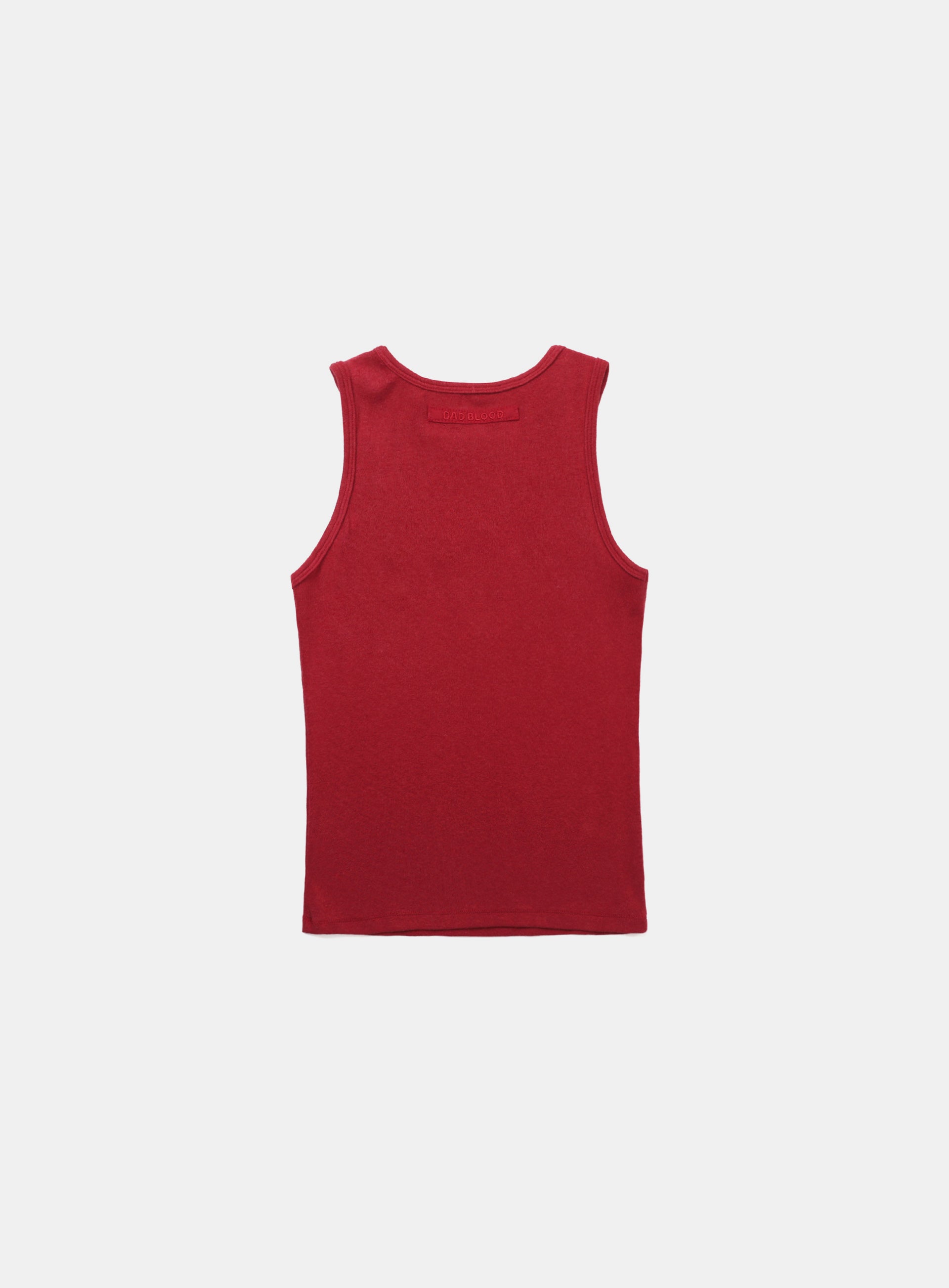 腋下和领口处采用罗纹收边设计,正面印有Bad logo,背面则有Badblood刺绣logo。